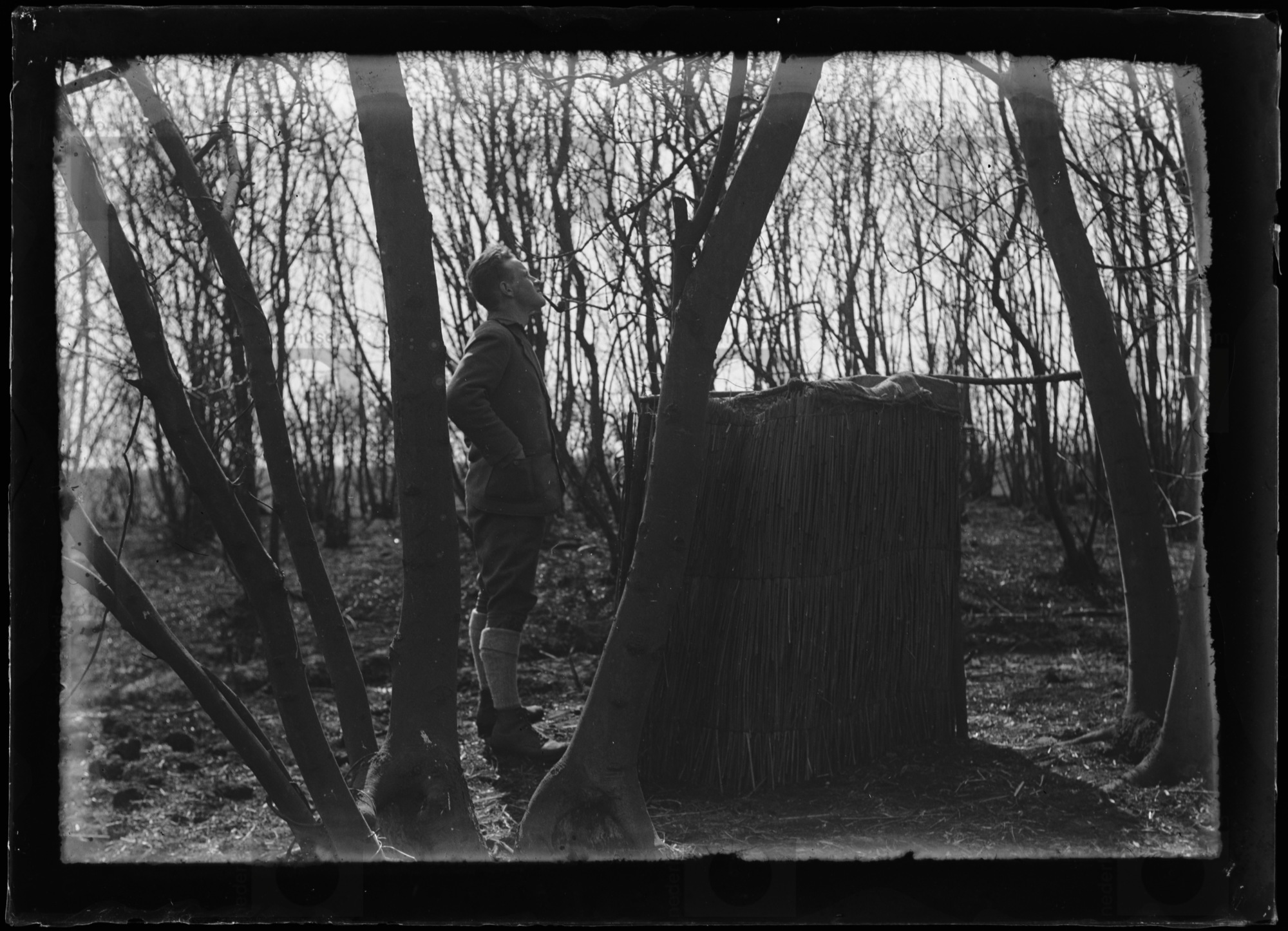Bert Garthoff bij schuiltent voor op stelling voor f...