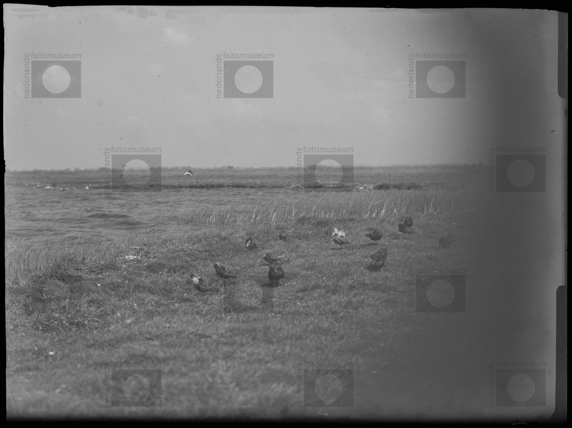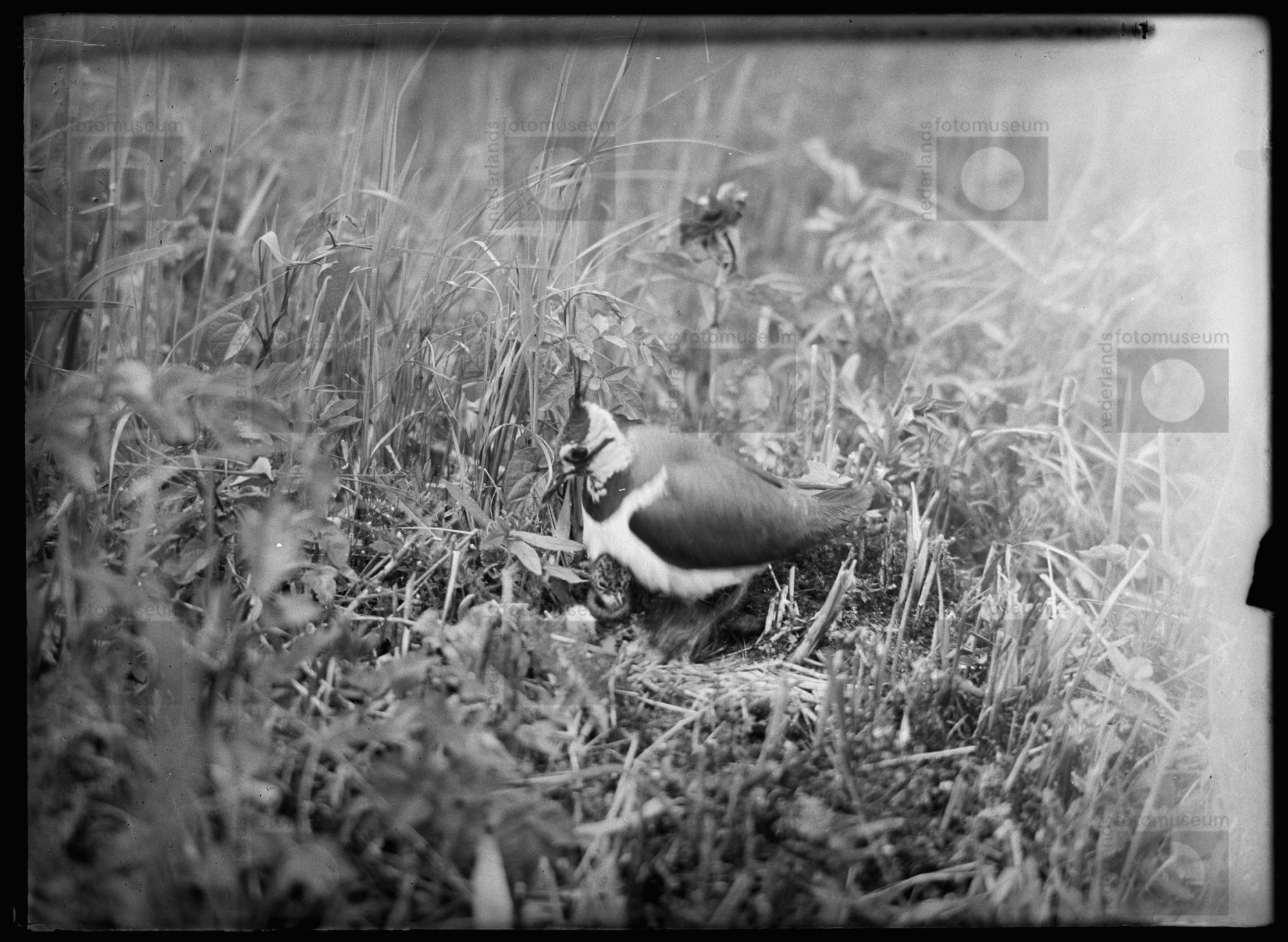 Kievit bij nest met jongen, Wanneperveen (1938)