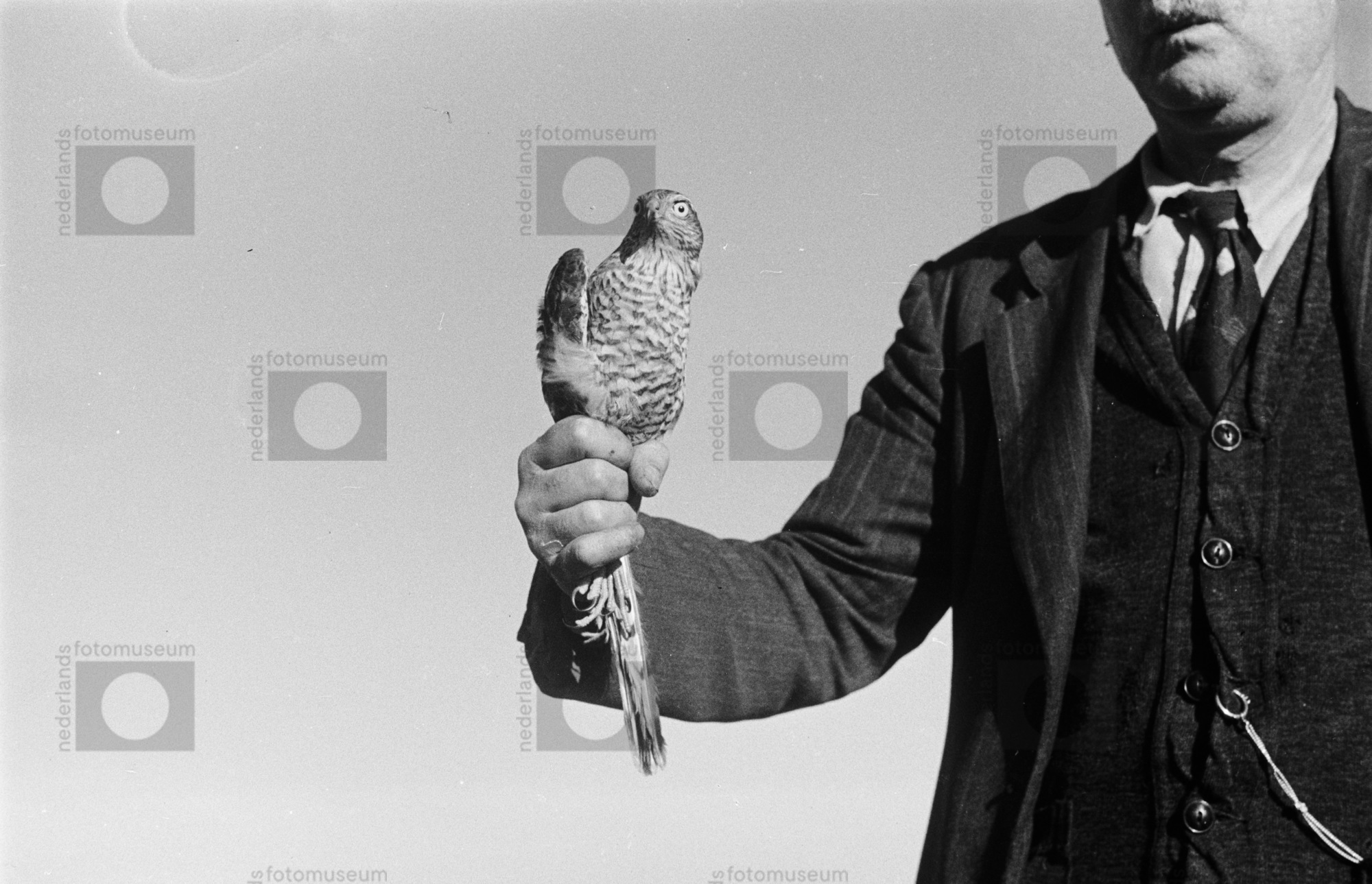 Dirk Hoos (1881-1970) met gevangen Sperwer, (1940)