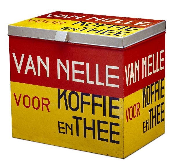 Voorraadblik voor koffie en thee, doosvormig met bes...