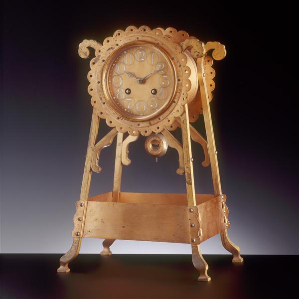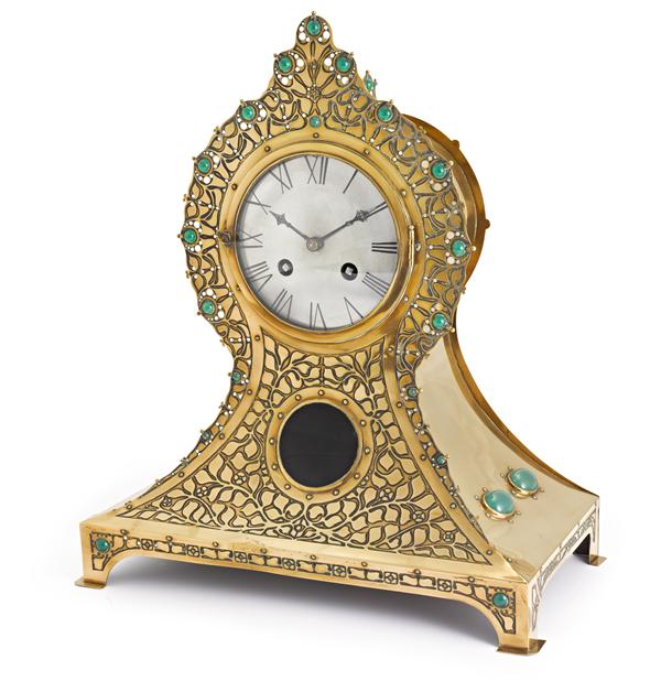 Met groene stenen ingelegde koperen pendule
