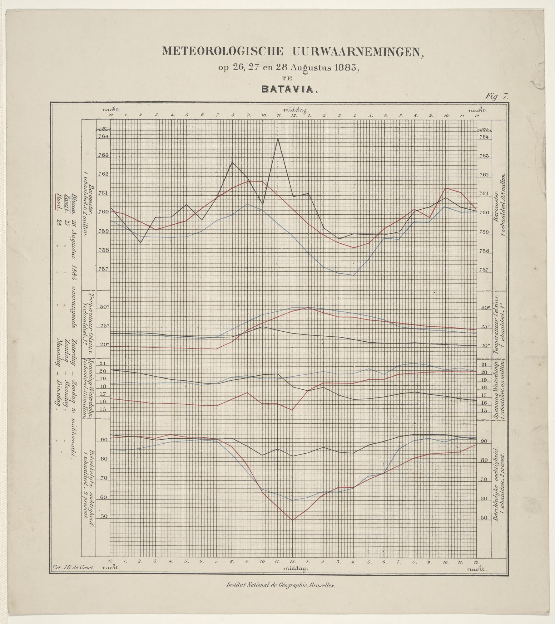 Grafiek van de magnetische storing te Batavia op 27 ...