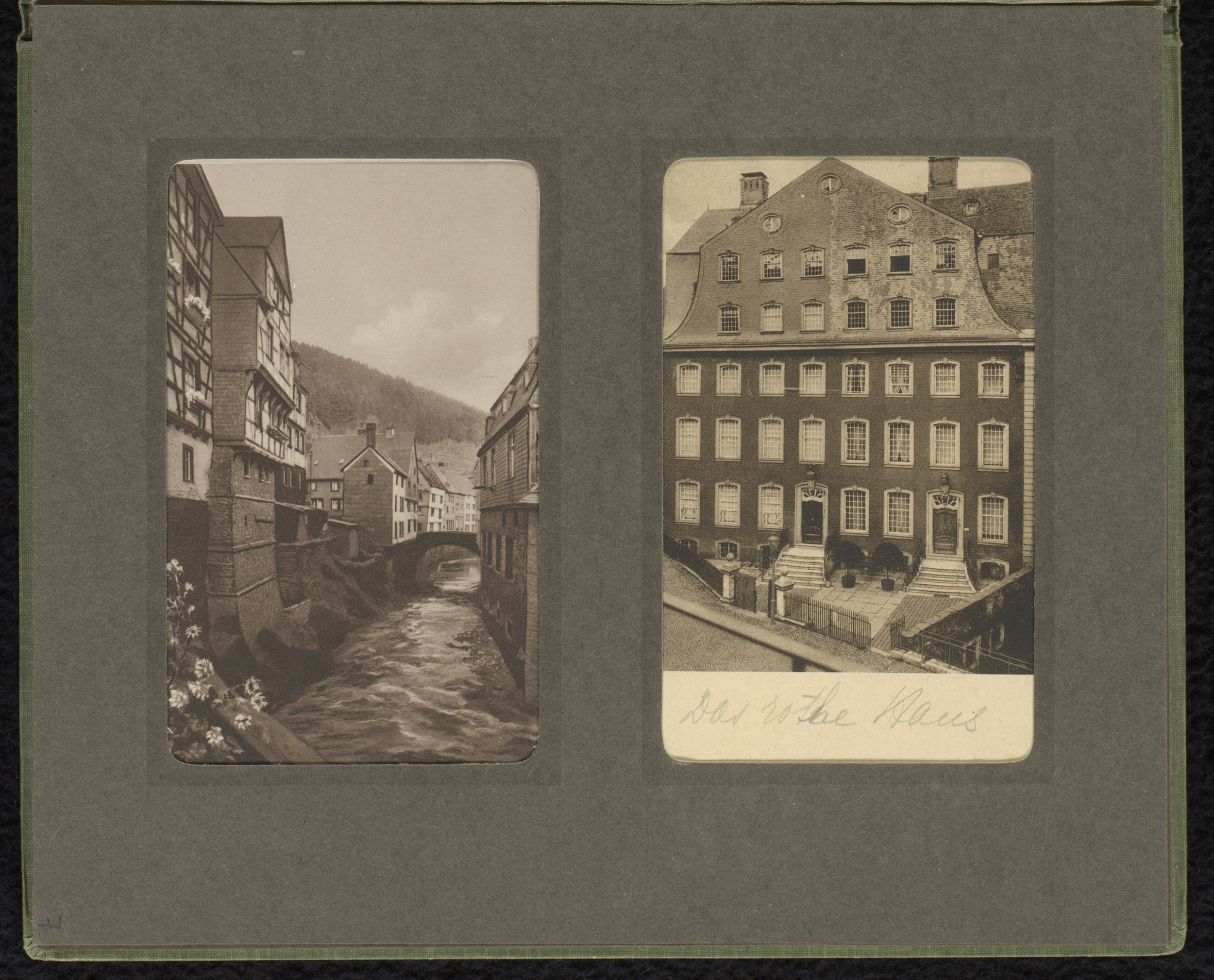 Twee prentbriefkaarten met gezichten op Monschau