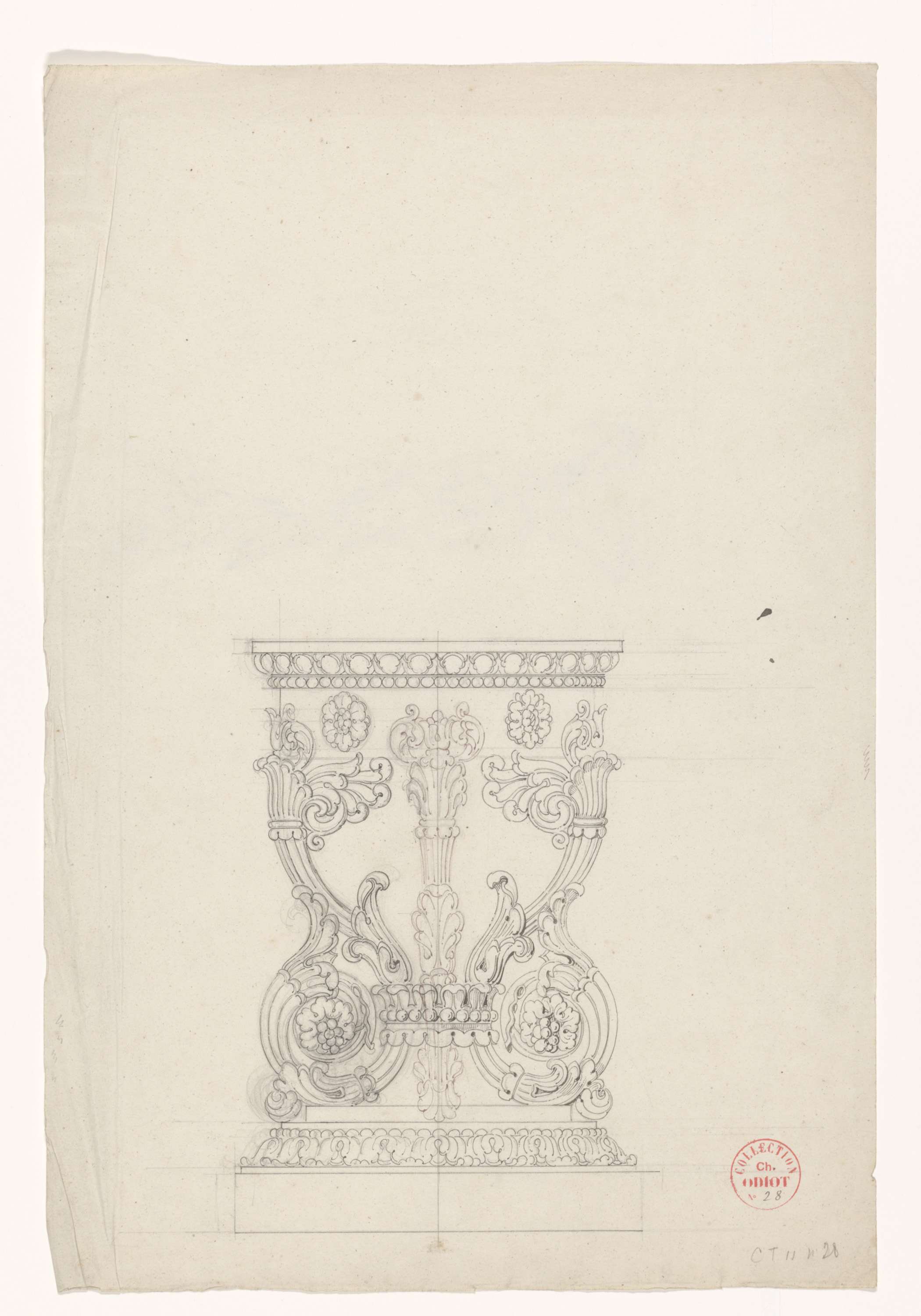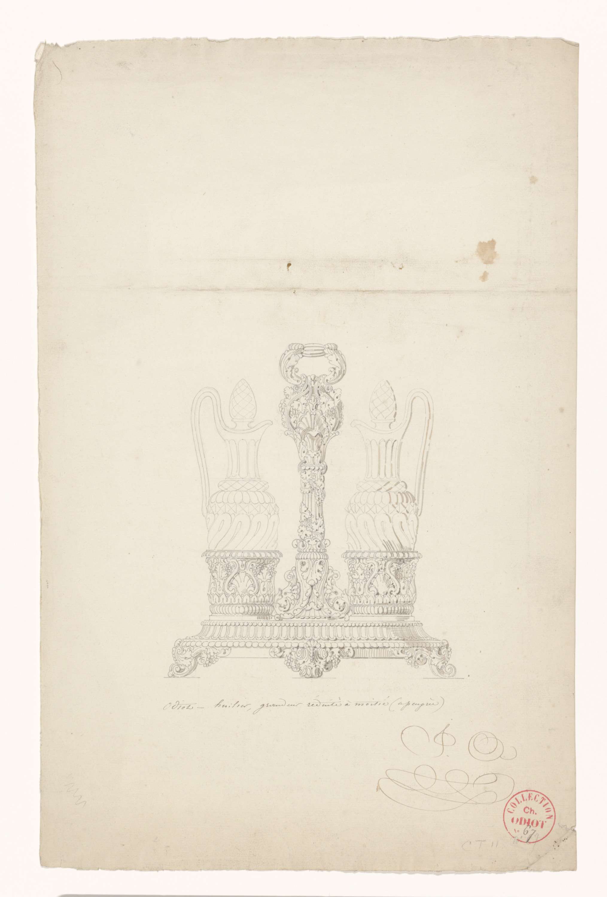 Ontwerp voor een zilveren tafelstuk met enkele en du...