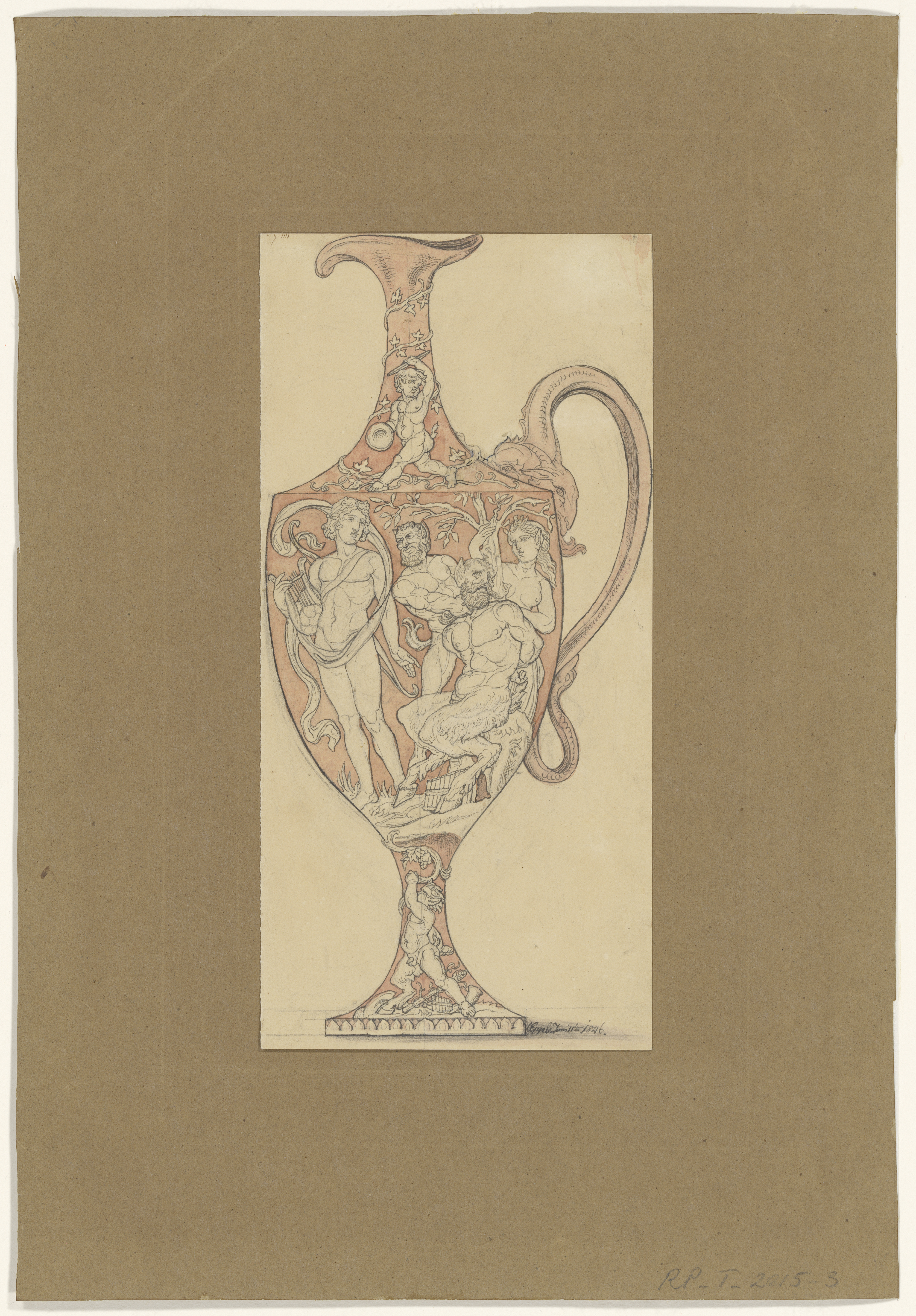Ontwerp voor een schenkkan met Apollo en Marsyas