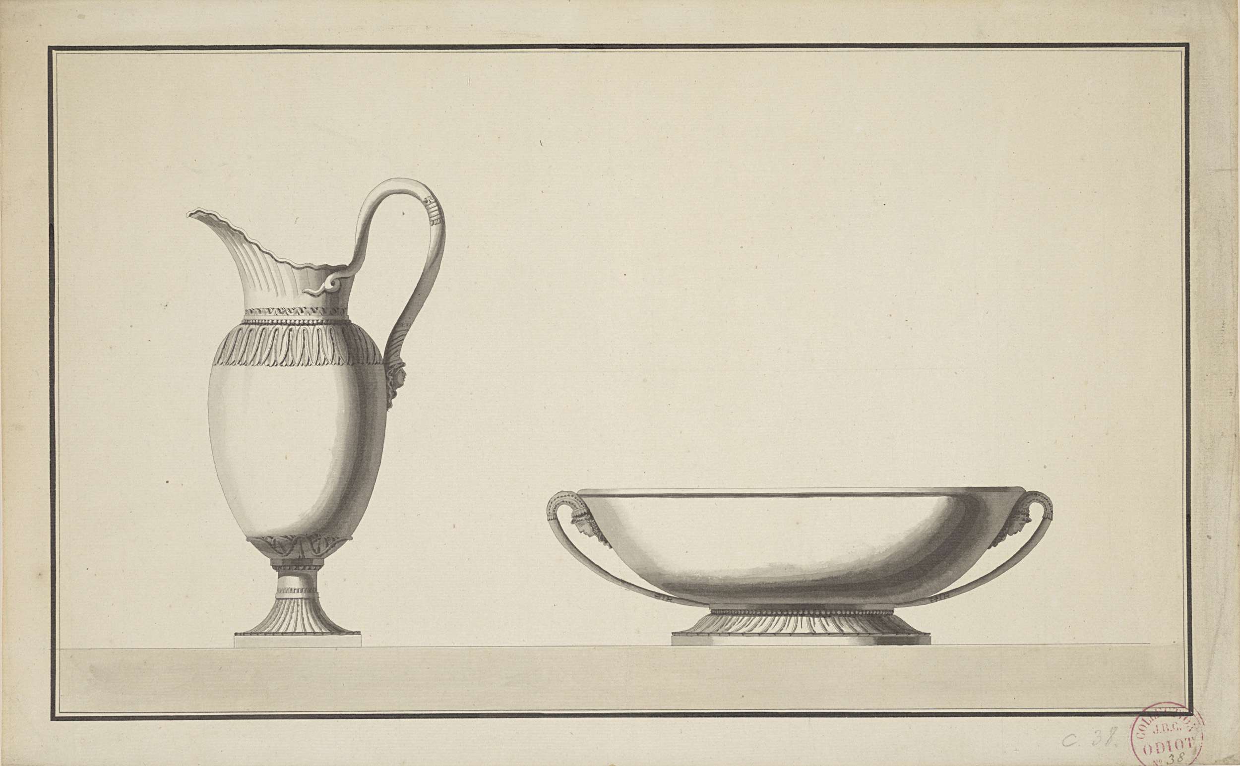 Ontwerp voor een zoutvat, een wijnkoeler en een kom