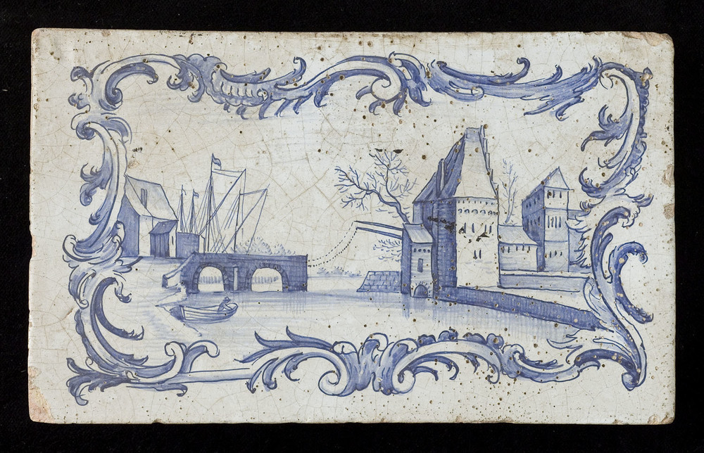 Tegel van keramiek, gemaakt in Harlingen ca. 1700-1800
