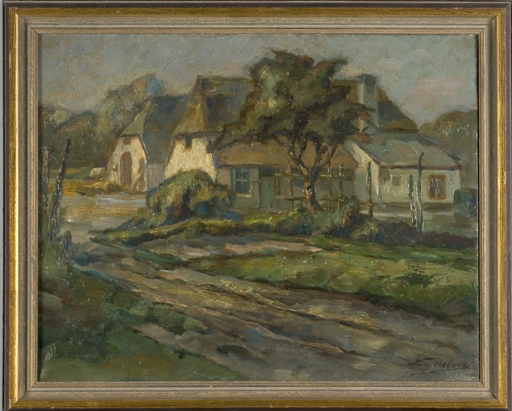 krijttekening op papier 'Dorpsgezicht' (onbekend) ni...