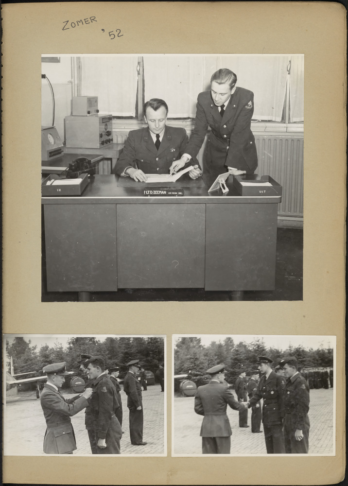 <p>Drie foto's: 1: Zeeman achter bureau met collega,...