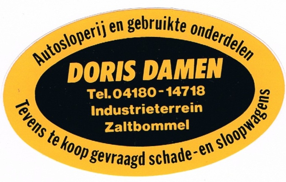 sticker autosloperij Doris Damen Zaltbommel 1970-1985