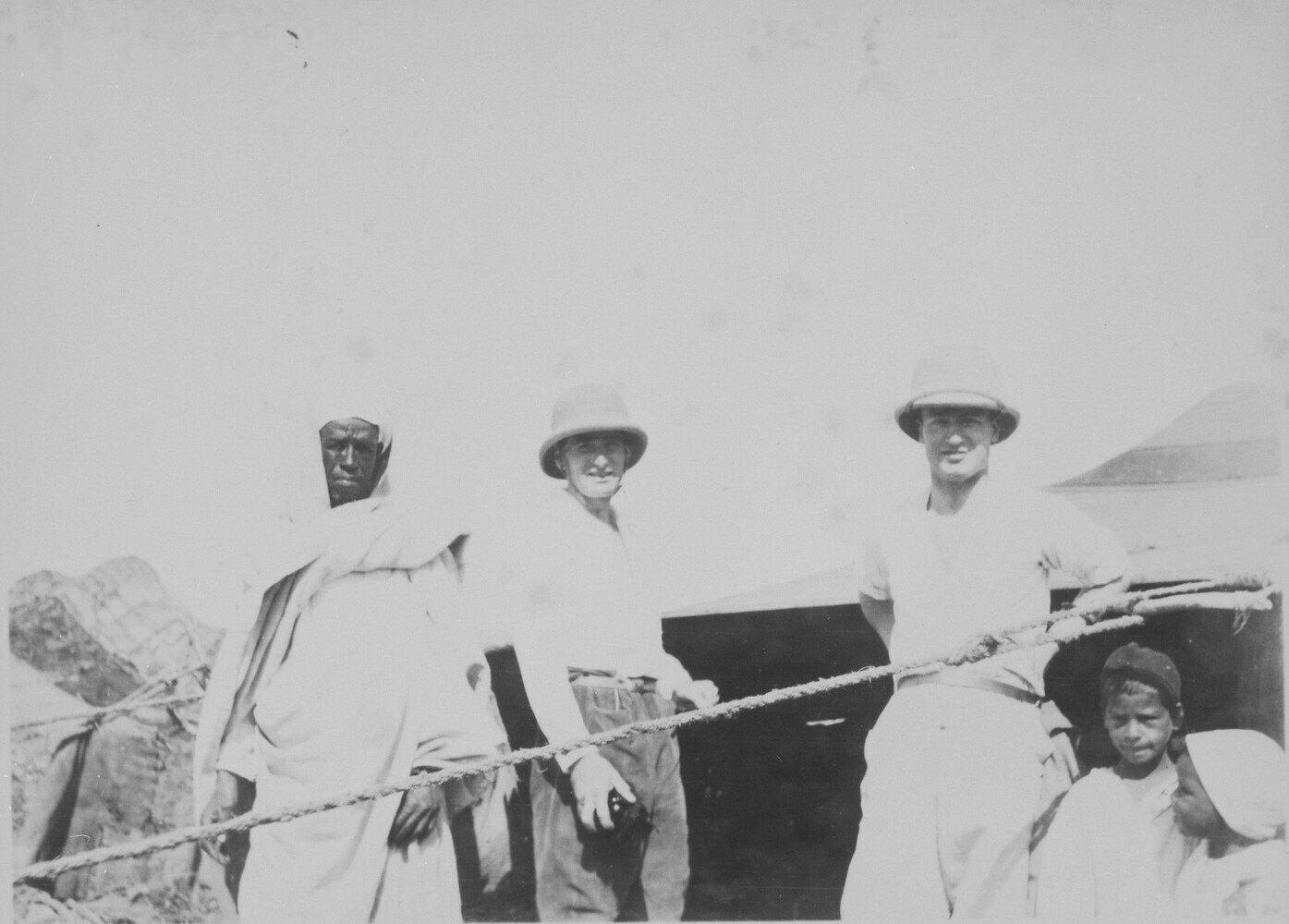 Charles Sayers met reisgezelschap bij een tent in de...