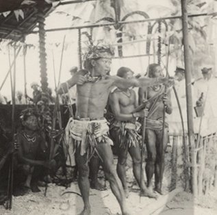 Portret van een Pencak Silat-danser op Sumatra, Indo...