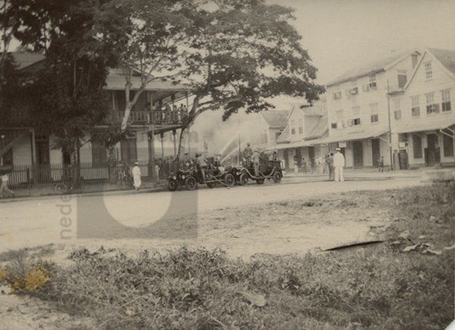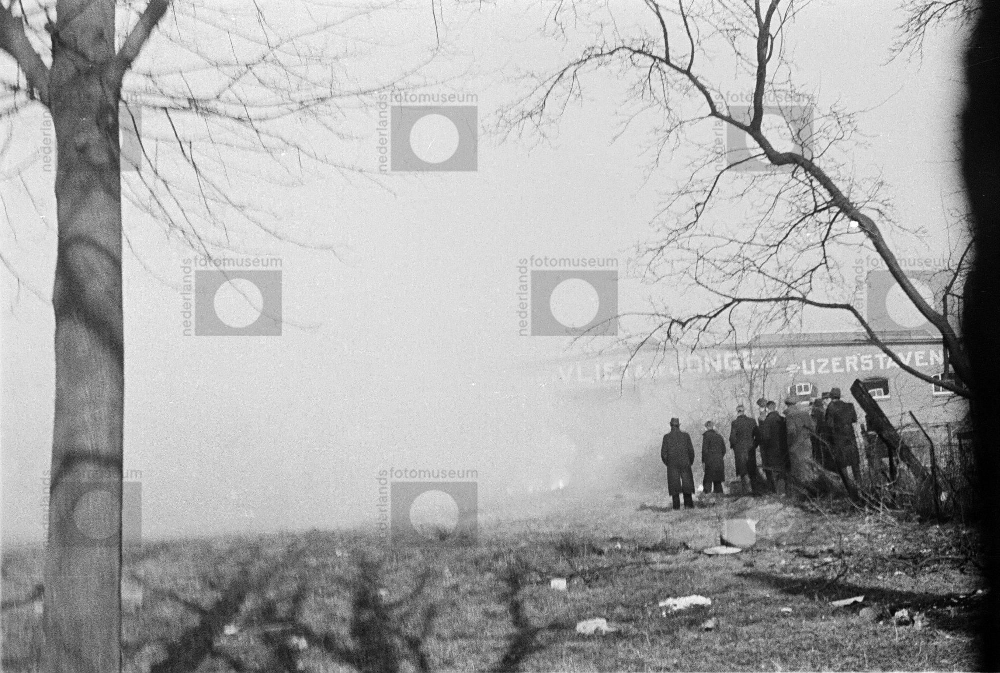 Mannen kijken naar de schade bij de ijzerstavenfabri...