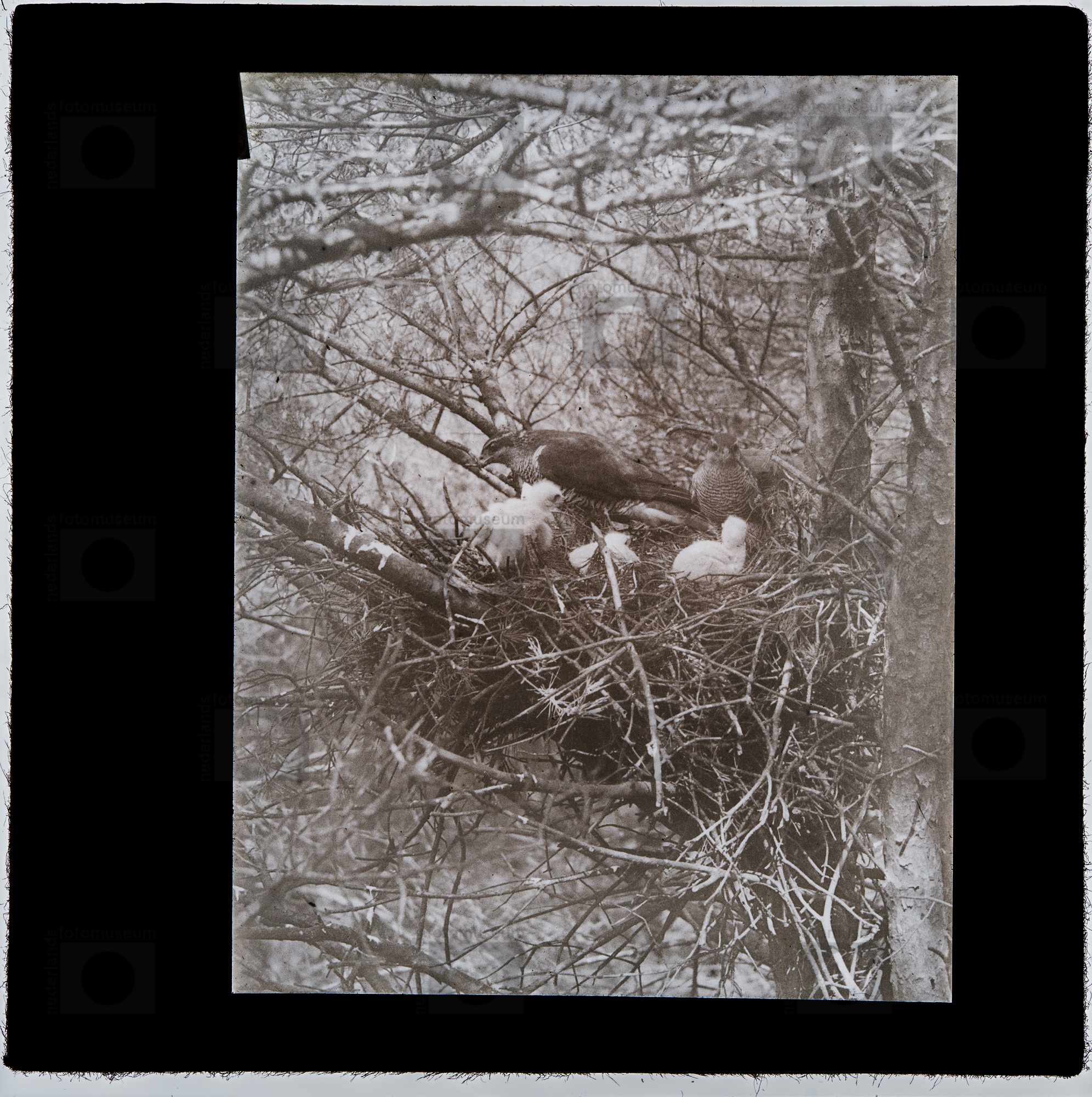 Vrouwtje Sperwer bij jongen in nest, De Steeg [1911]