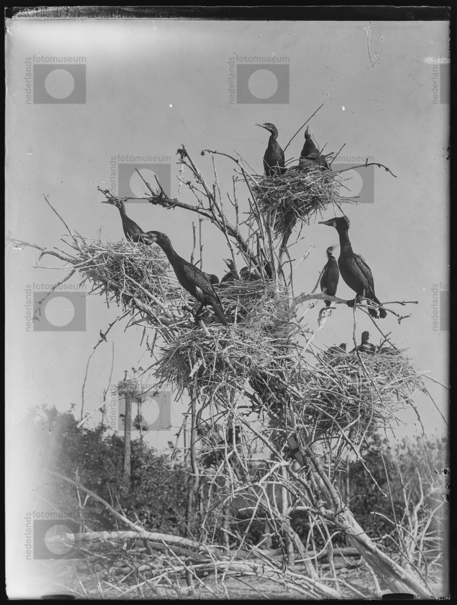 Aalscholvers bij/op hun nest, Lekkerkerk (1931)