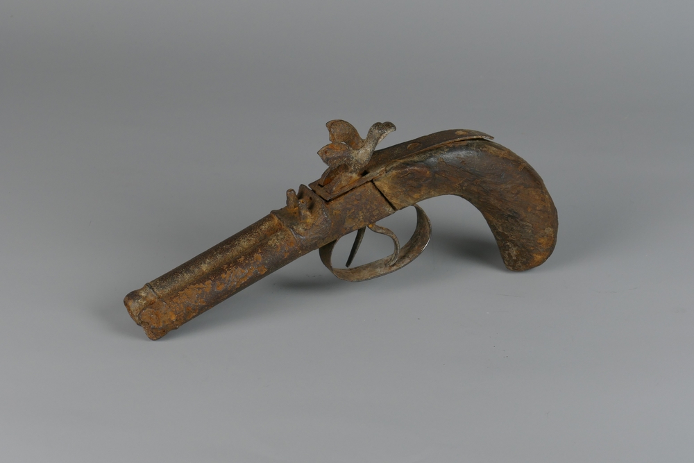 zakpistool of percussiepistool, dubbelloops, circa 1840