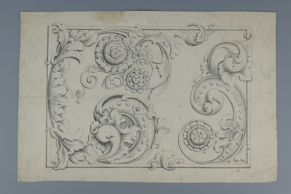 Litho, voorstellende blad- bloemranken met omlijstin...