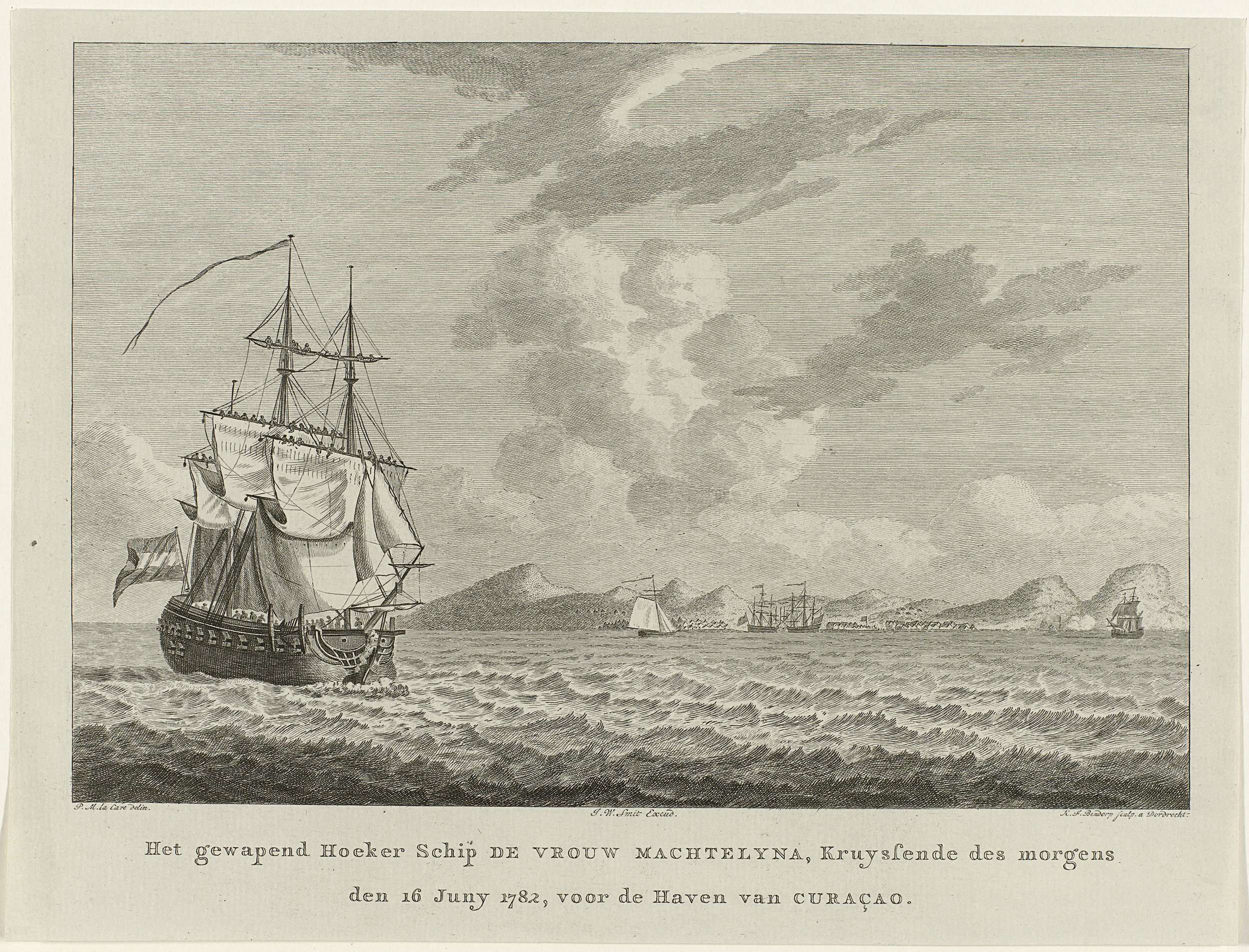 Hoekerschip Vrouw Machtelyna voor de haven van Curaç...