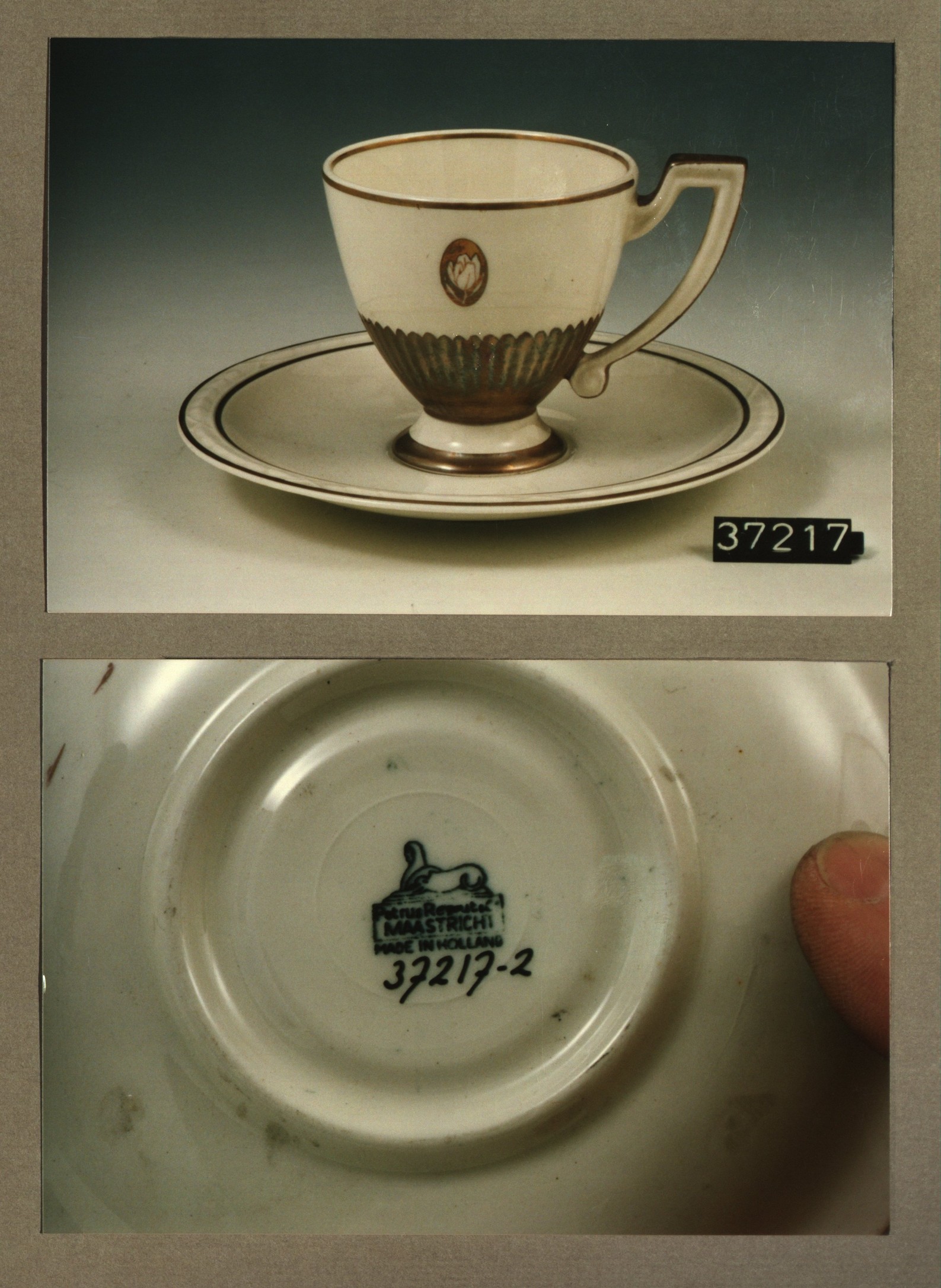Kop en schotel, model Recamier met decor Goudrand
