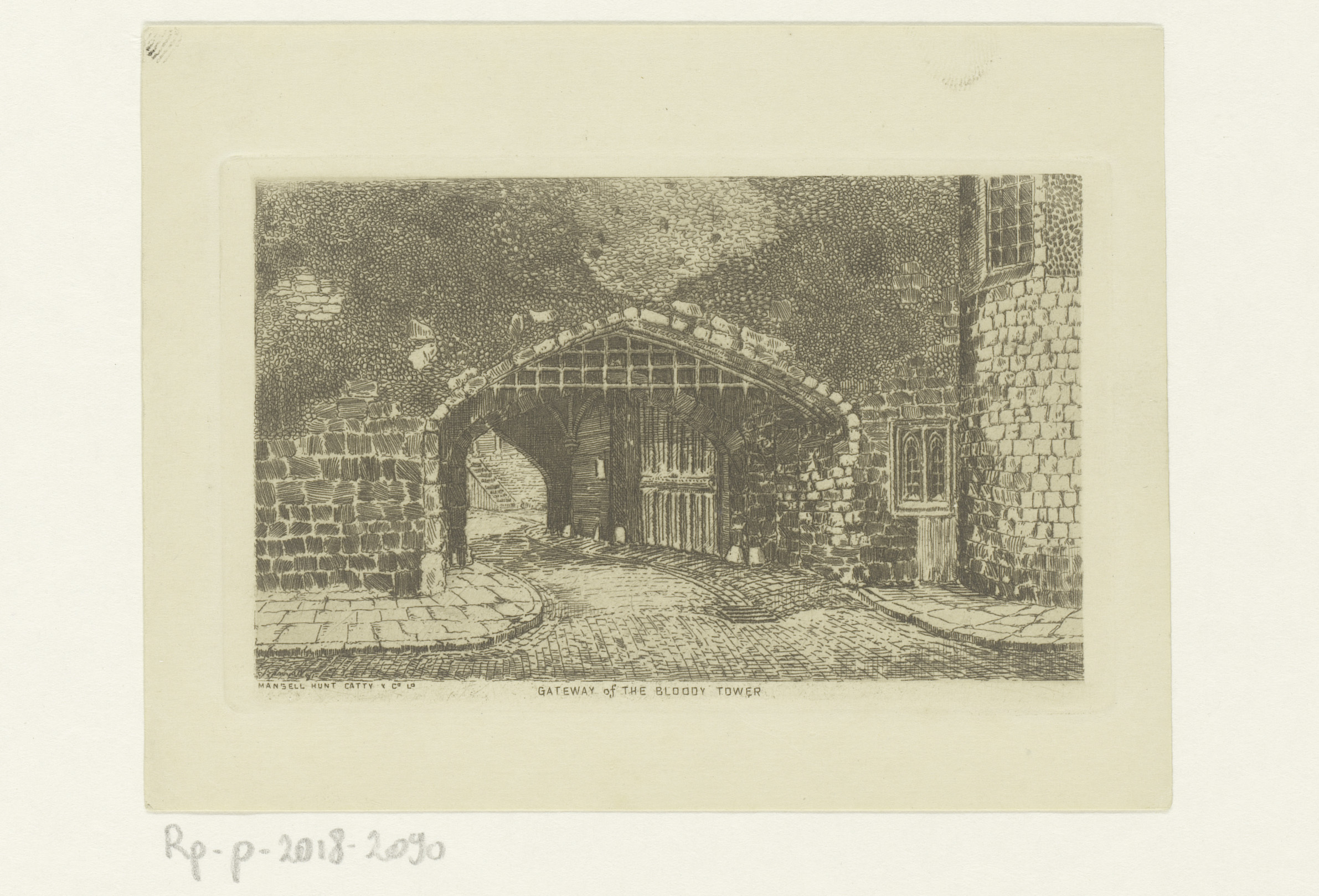Gezicht op de poort van de Bloody Tower