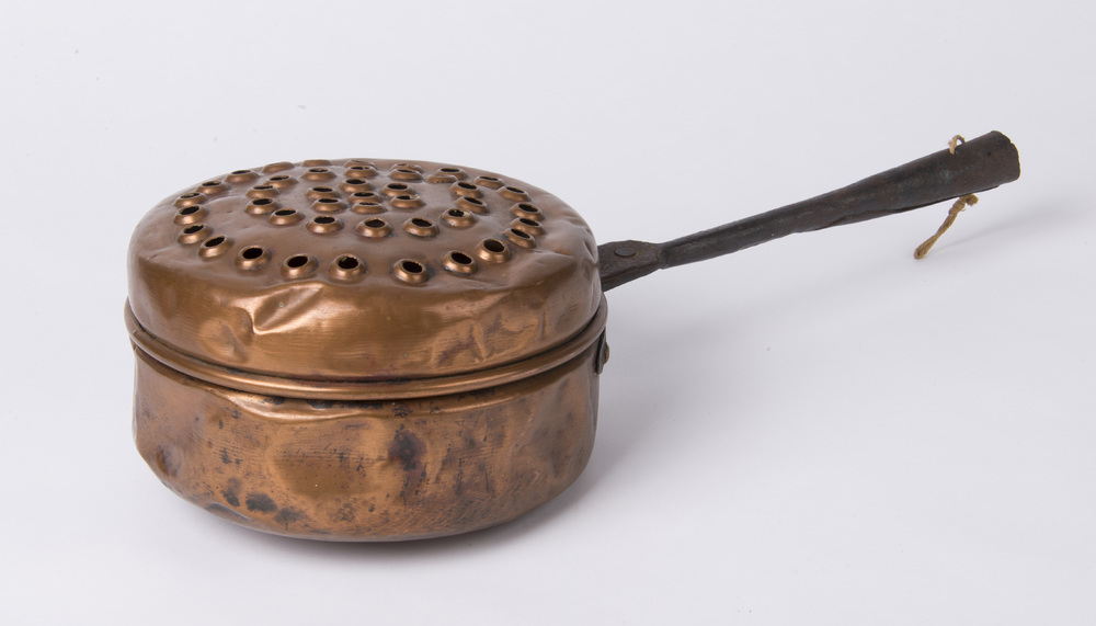 Beddenpan van rood koper met ijzeren steel, 19e eeuw