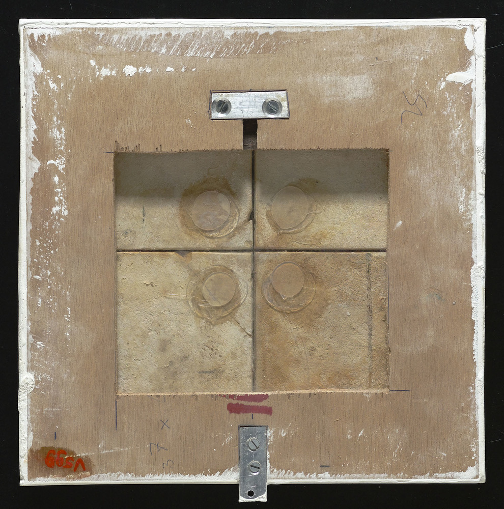 tegelveld, bestaande uit vier tegels van aardewerk m...