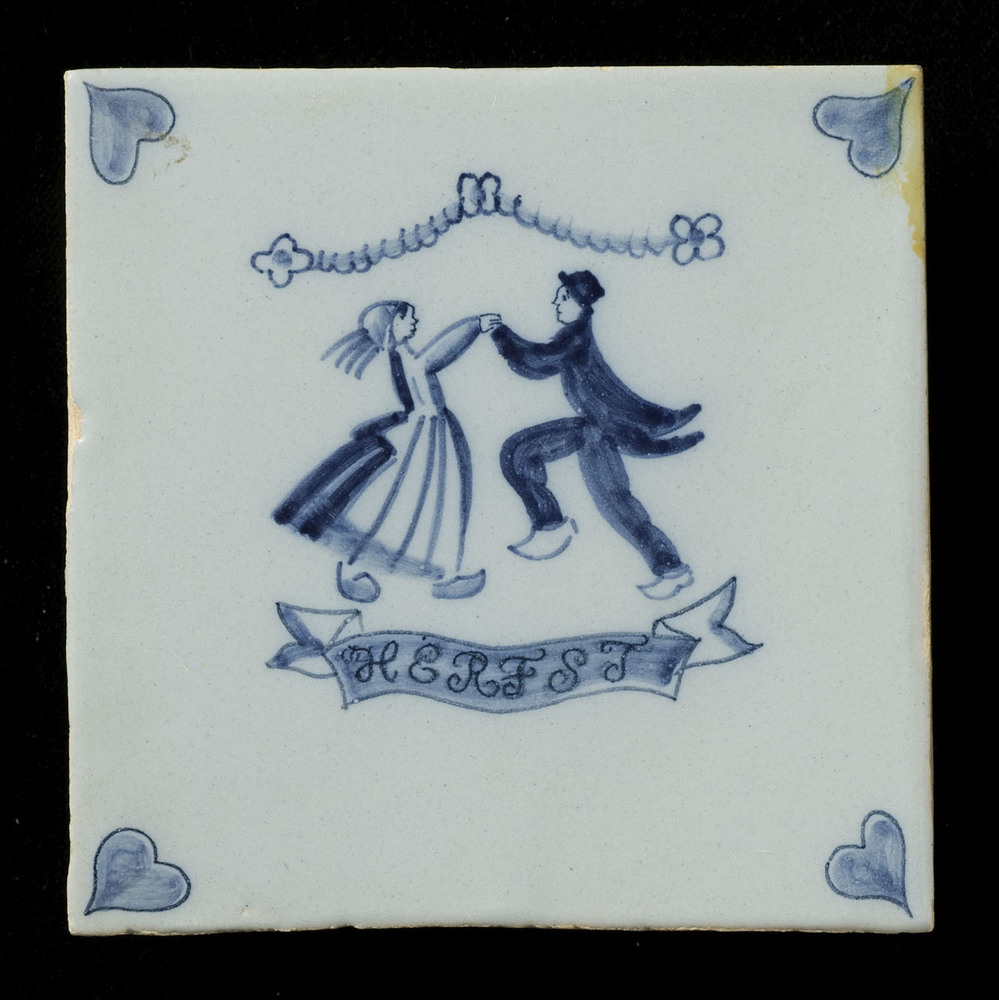 Tegel van keramiek, tinglazuur, voorstellende jaarge...