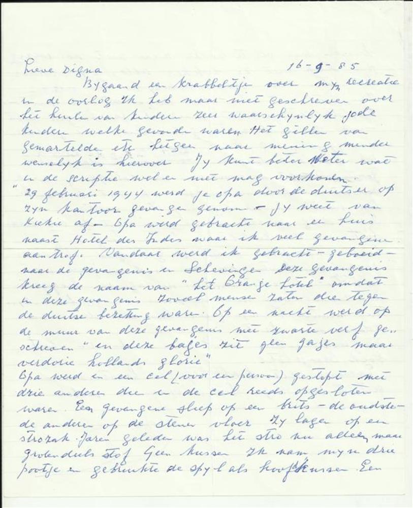 Brief aan Digna van Jhr de Kock - 16 september 1985