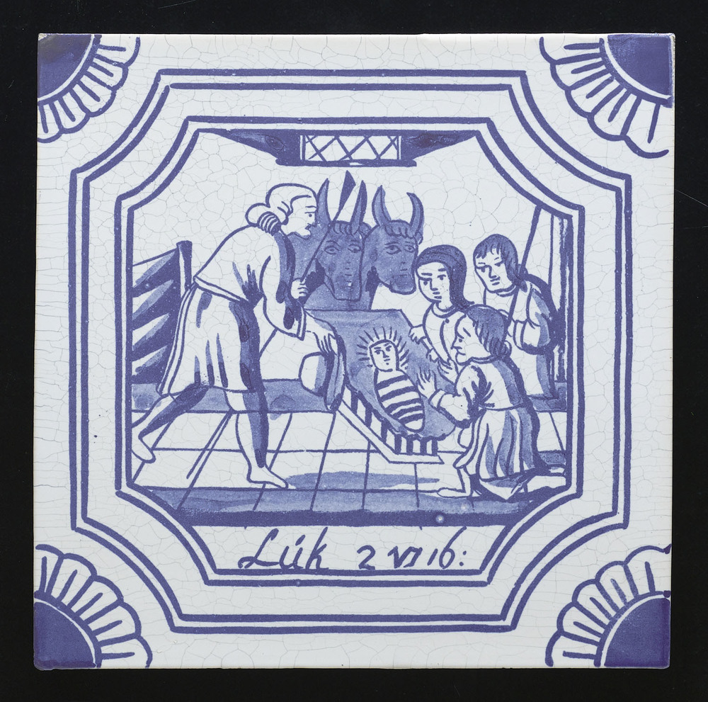 Tegel met voorstelling 'De aanbidding van de herders...