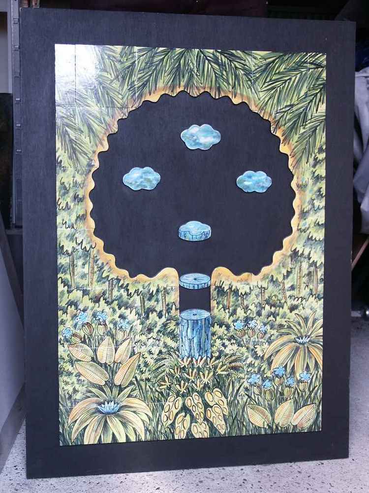 Tegeltableau van keramiek, tegels versneden, voorste...
