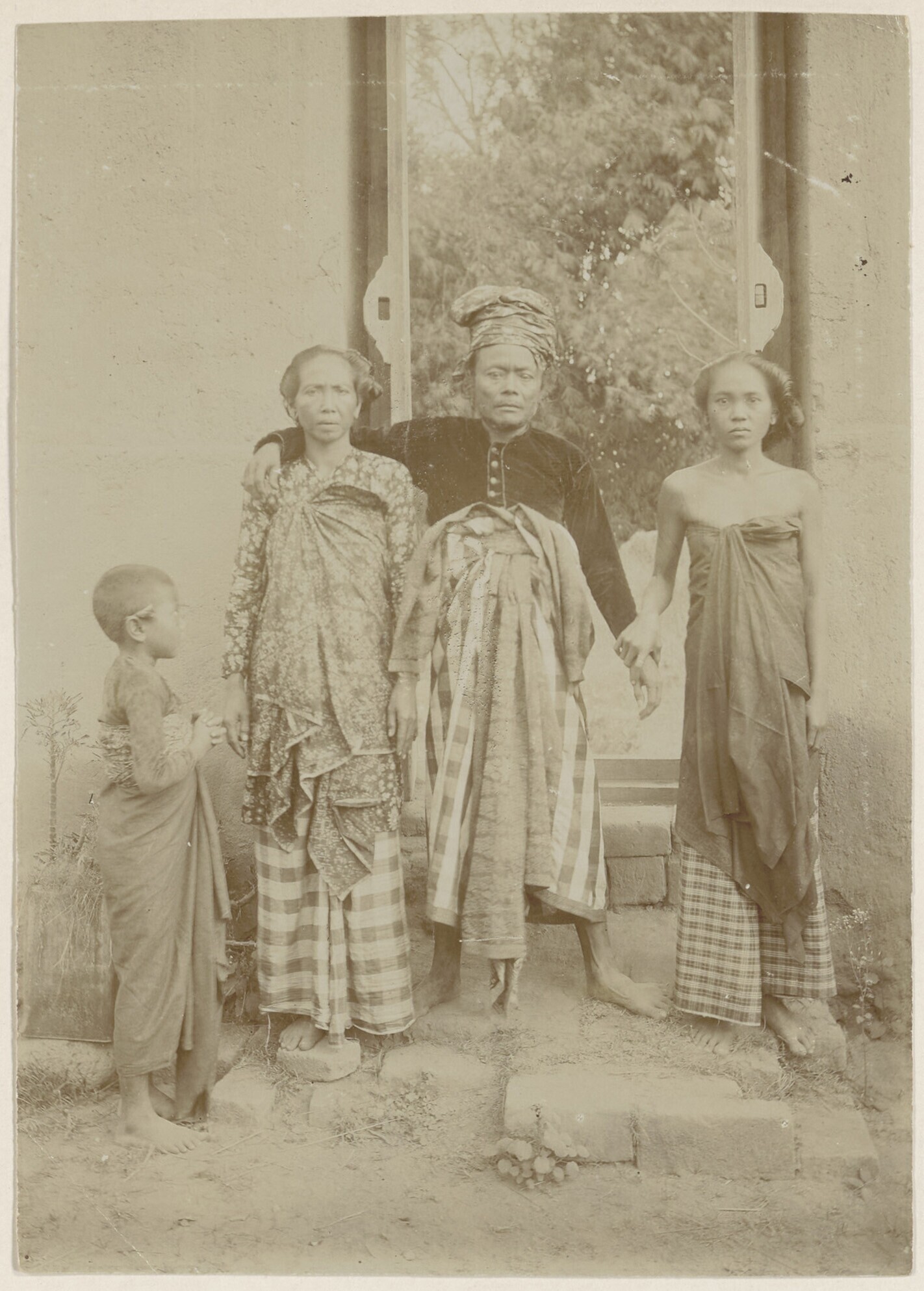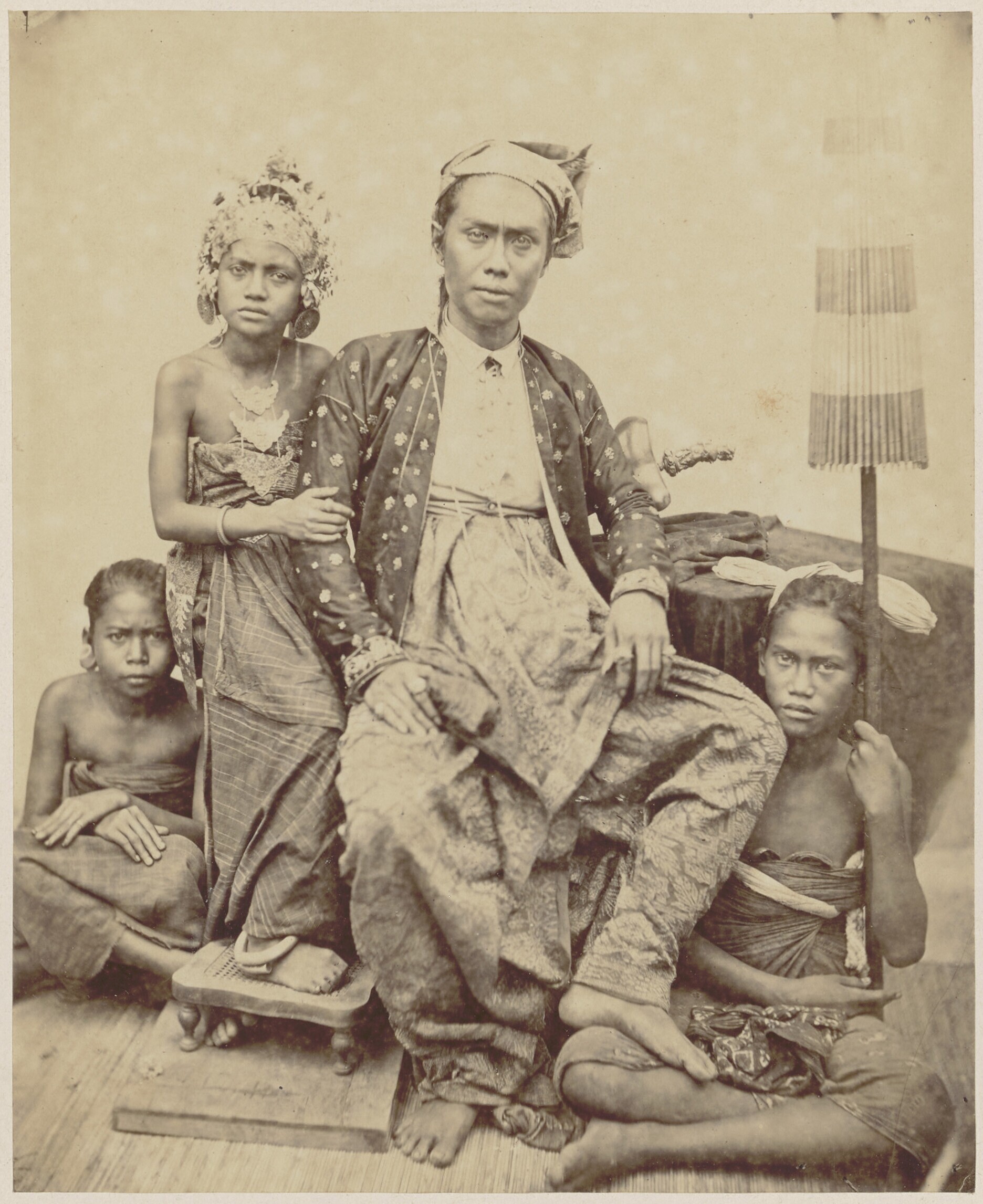 Groepsportret van een Balinese man en vier vrouwen