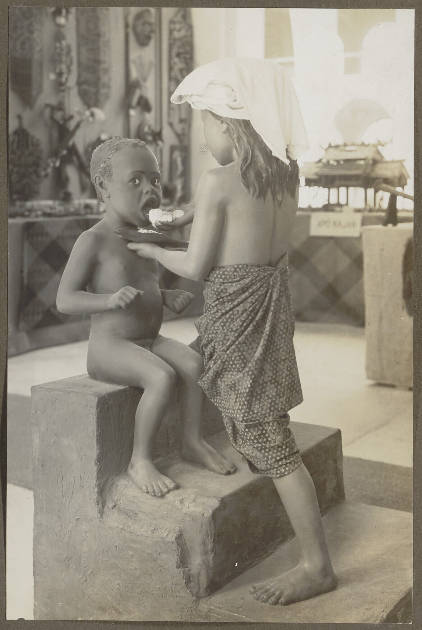 Beeldengroep van twee kinderen uit Bali in het Kolon...