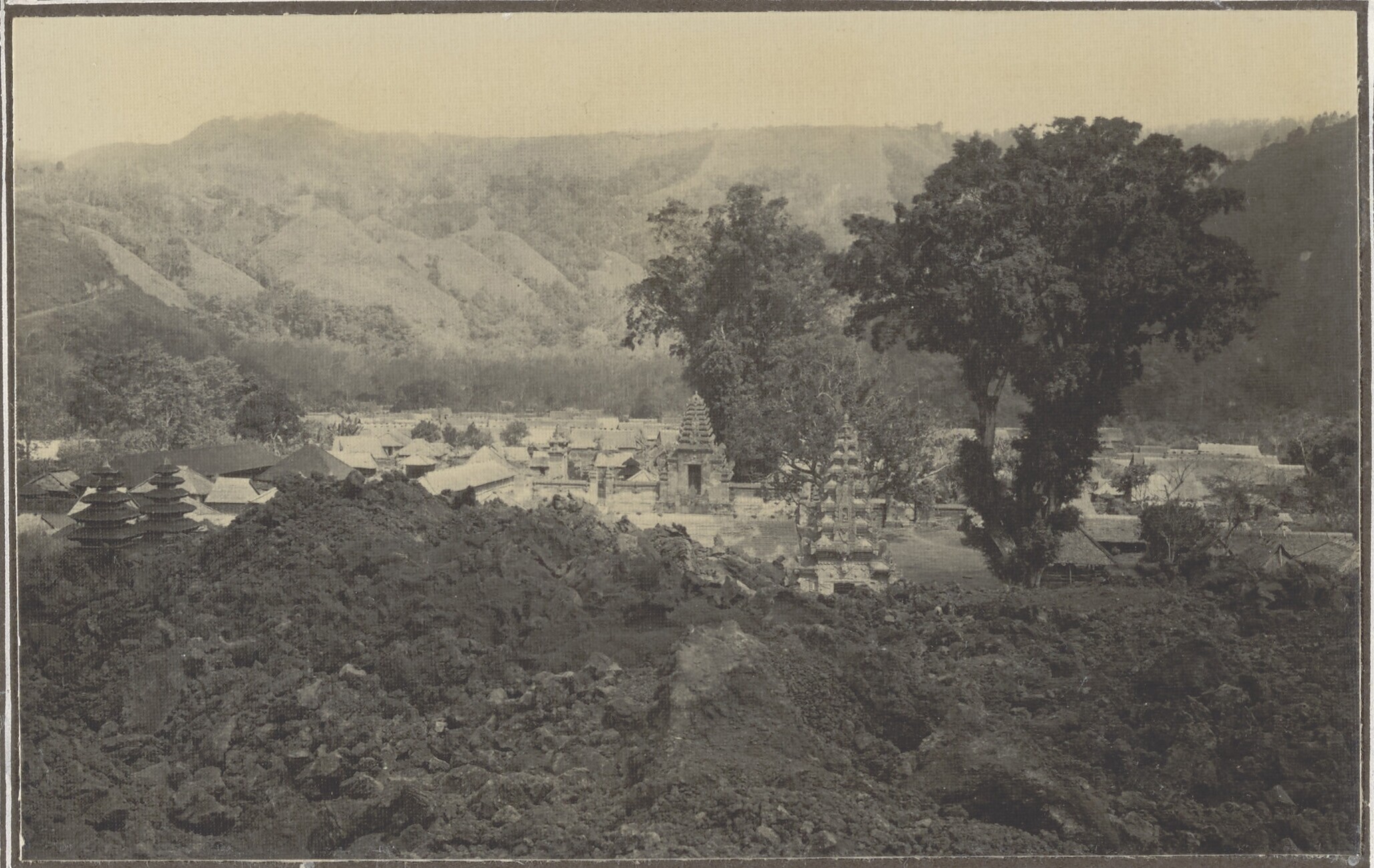 Het tempelcomplex van Batoer met de deels onder lava...