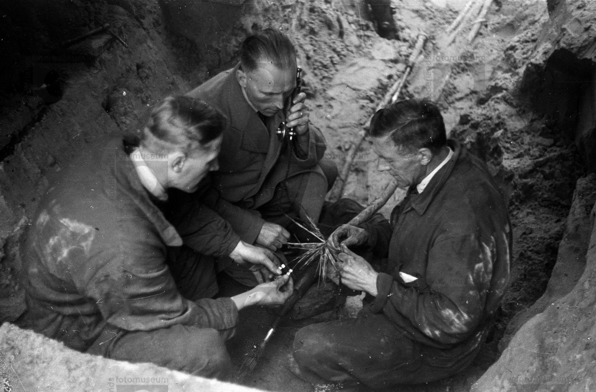 Wachtende mannen in interieur vlak na de Watersnoodr...