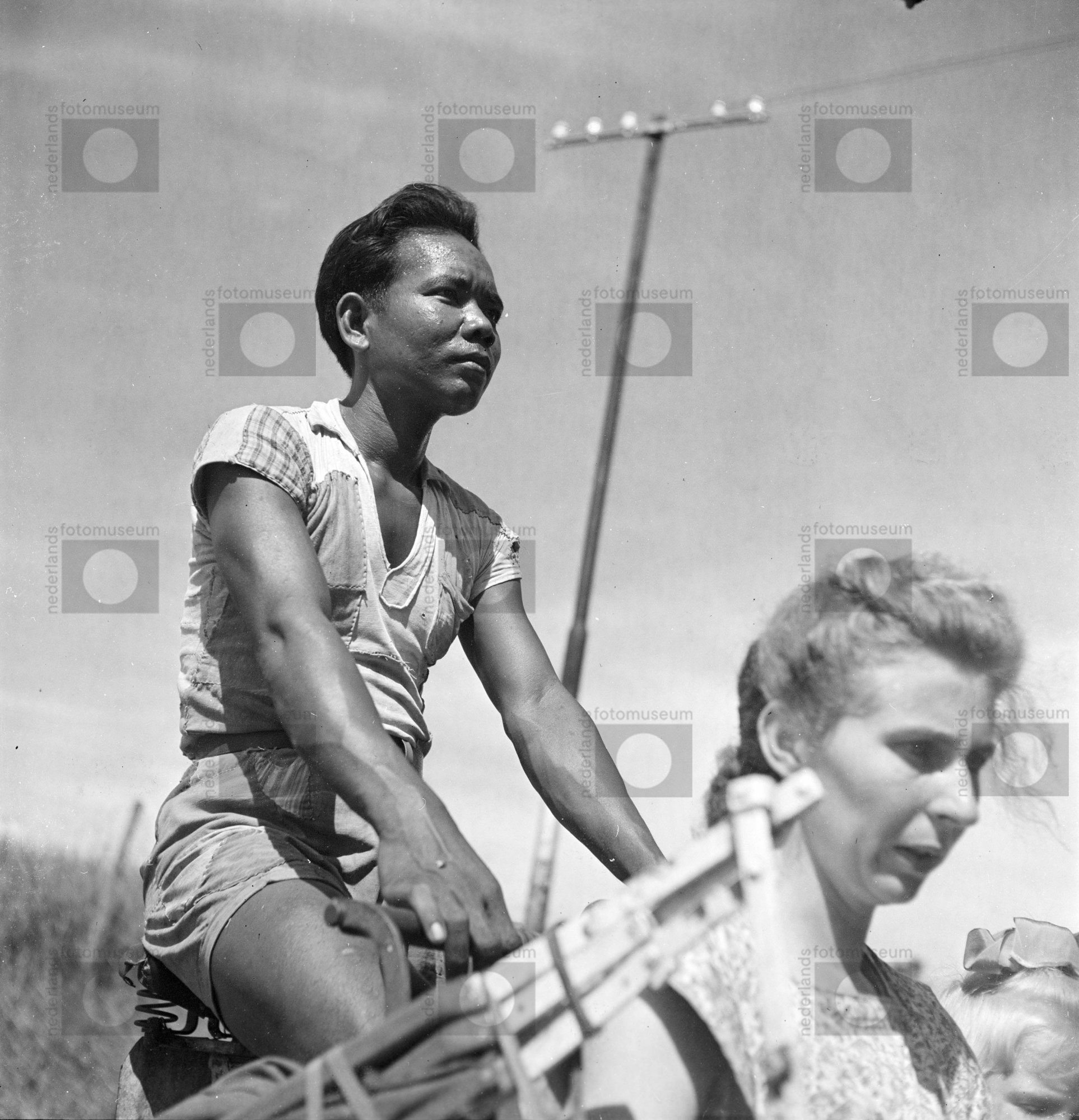 Een betja-bestuurder vervoert Stien, de vrouw van de...