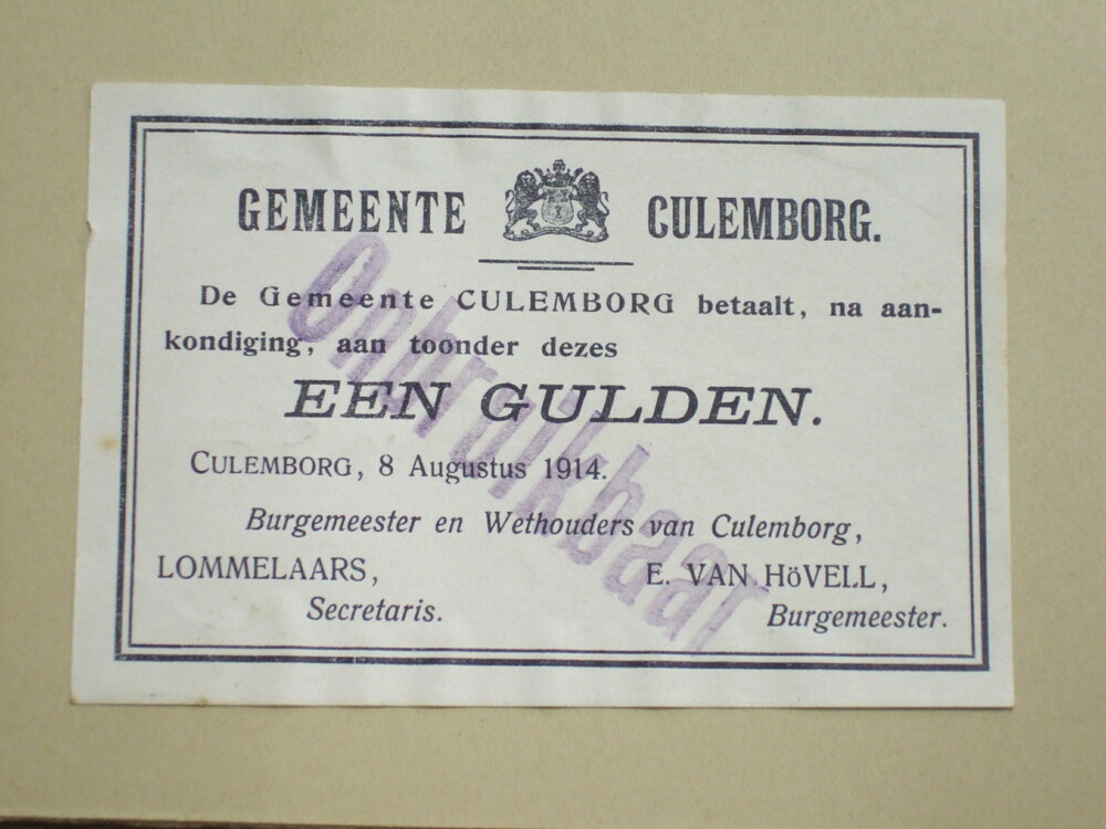 geldbiljet of noodgeld ter waarde van een gulden uit...
