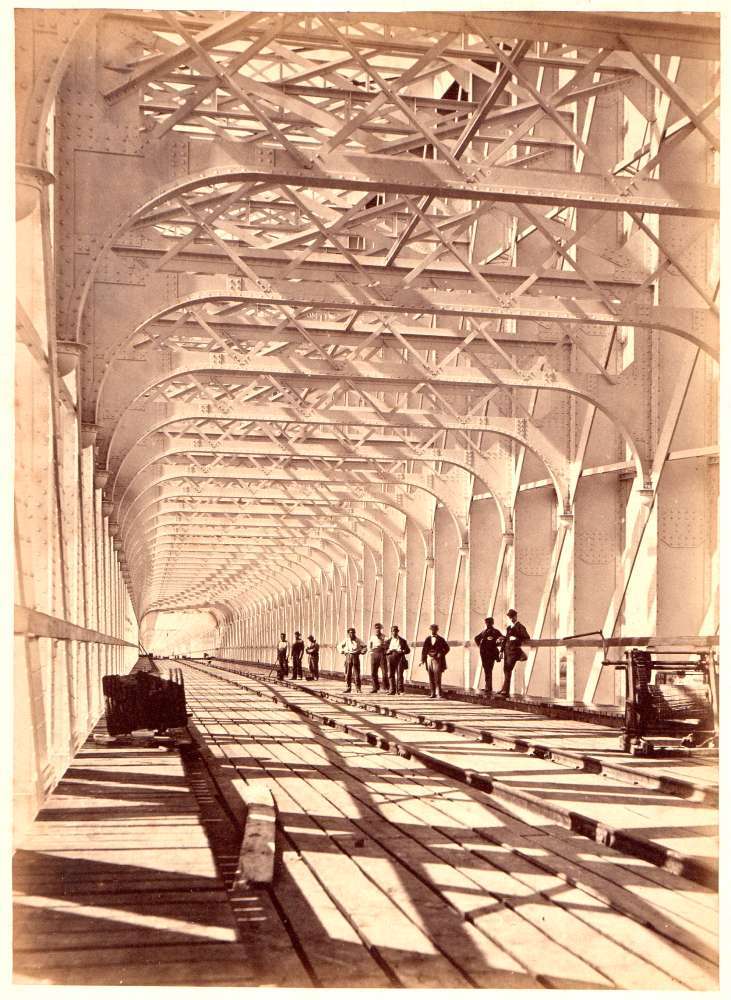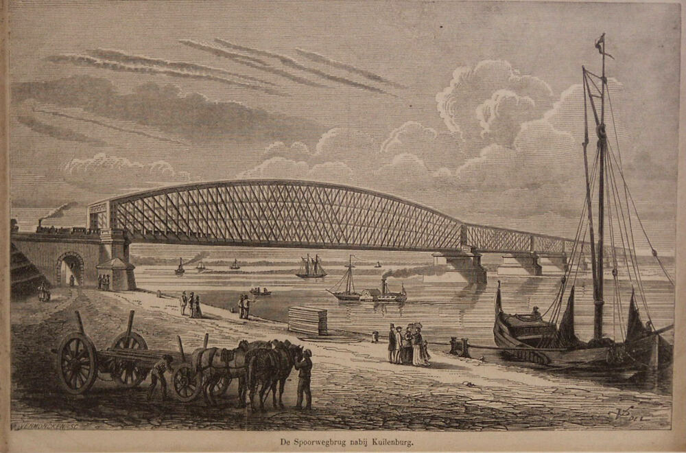 Foto, voorstellende de spoorbrug te Culemborg, 1868
