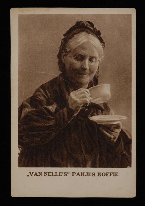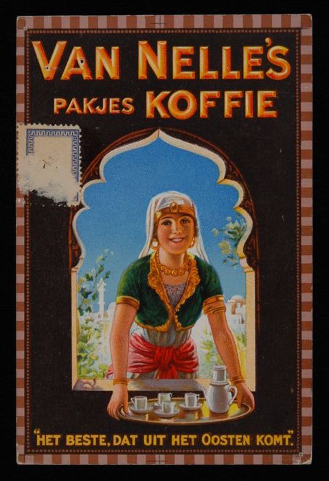 Ansichtkaart met advertentie Van Nelle en bestelling...