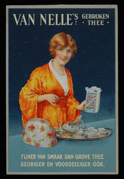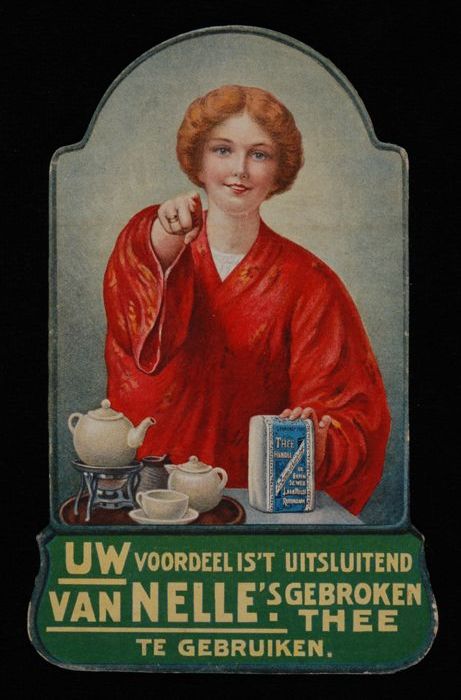 Kaart of klein reclamebord Van Nelle's thee met wijz...