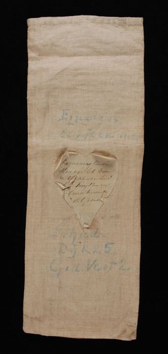Linnen zak van Van Nelle, waarin ooit een document zat