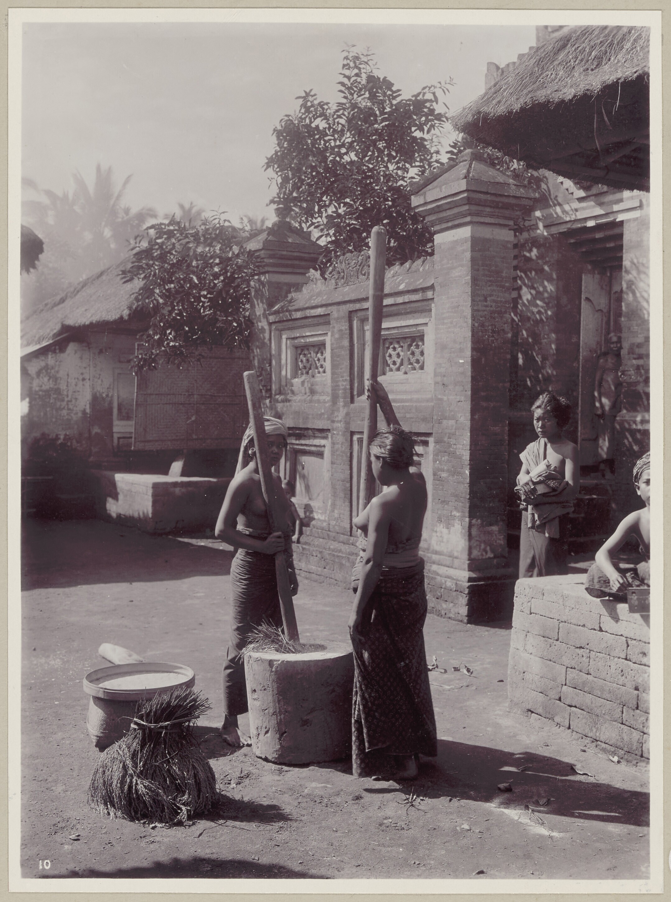 Balise women poundering rice, Bali.