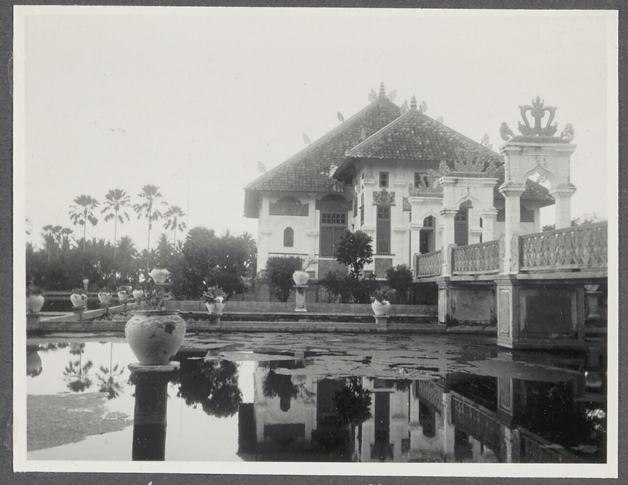 Zicht op het waterpaleis van Oedjong, Bali
