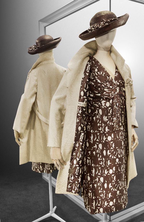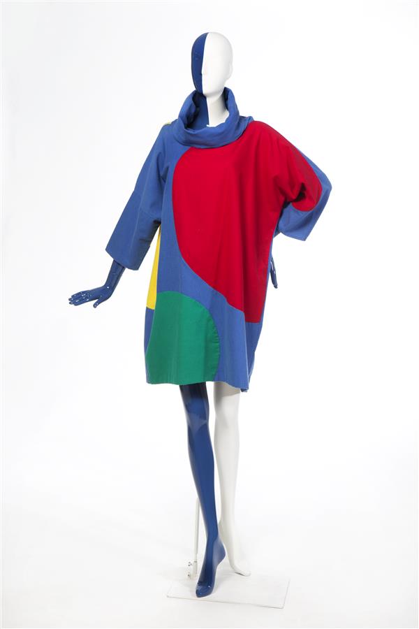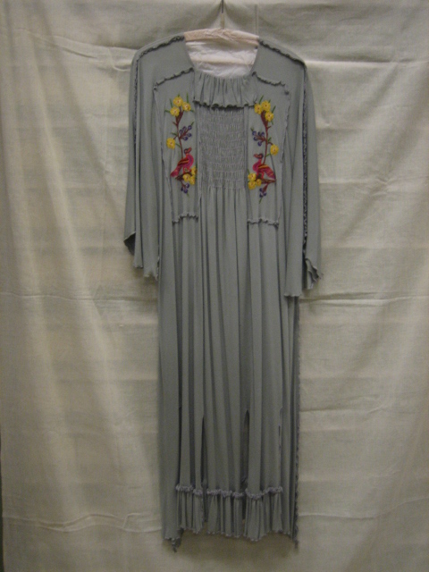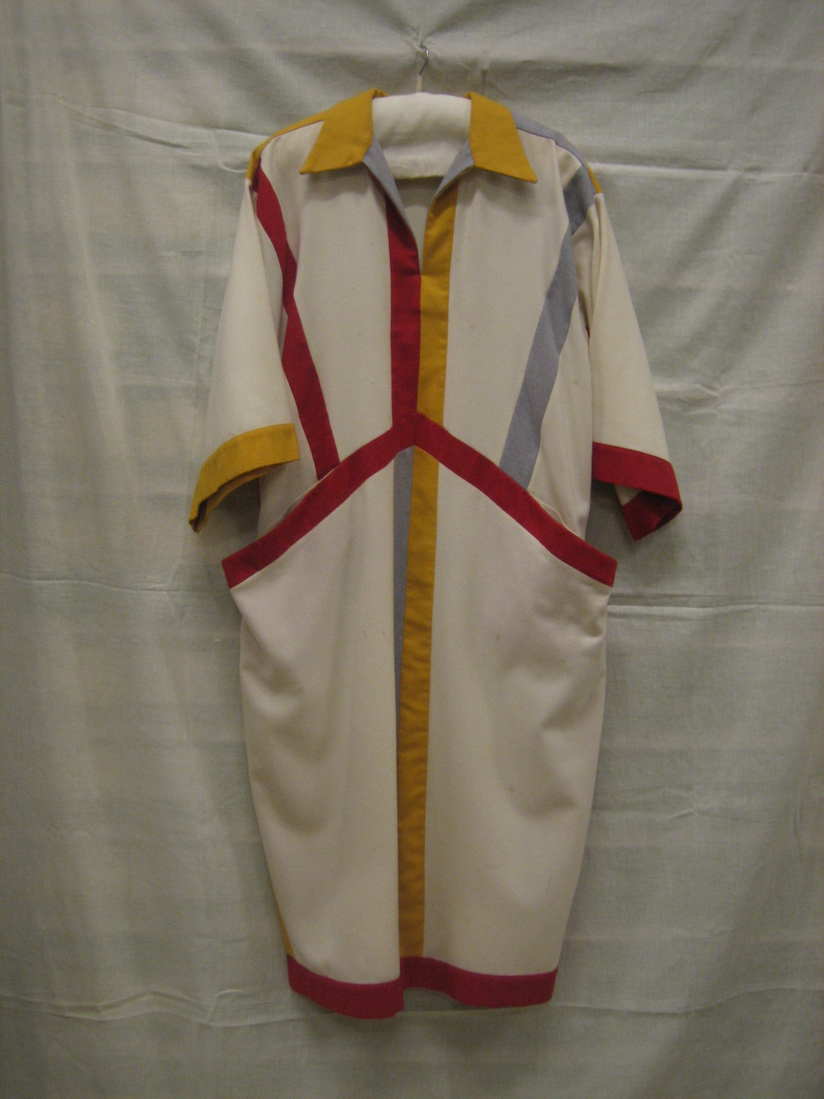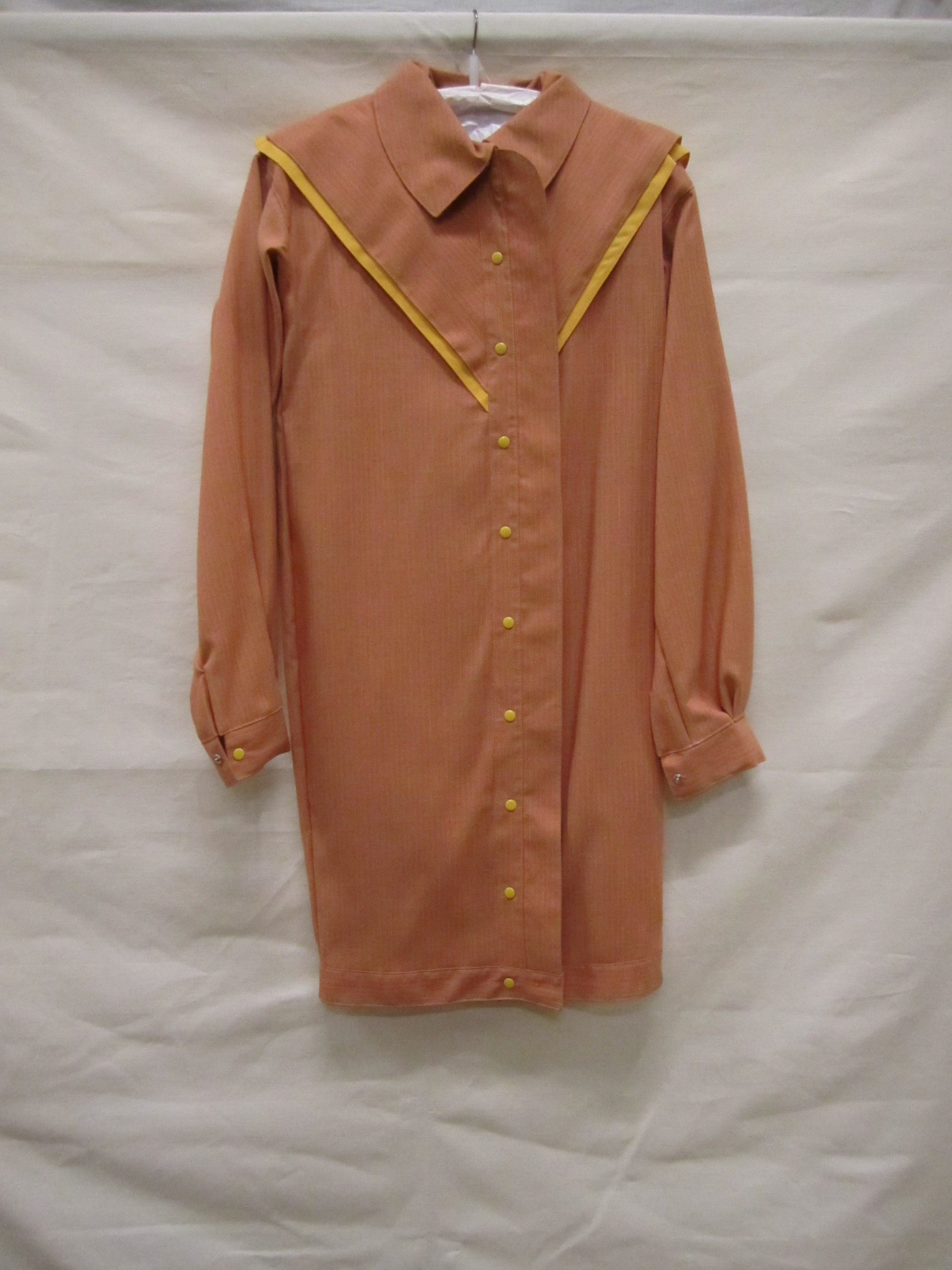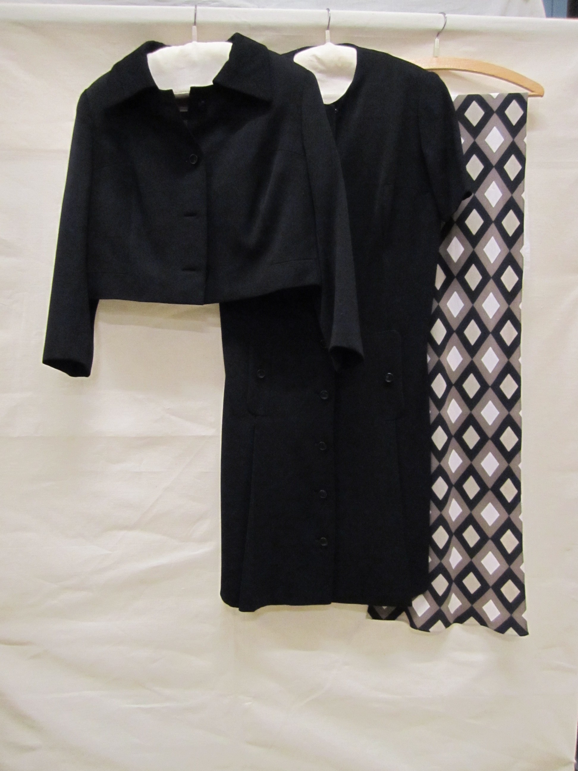 Ensemble bestaand uit een wijdvallende doorknoopjurk...