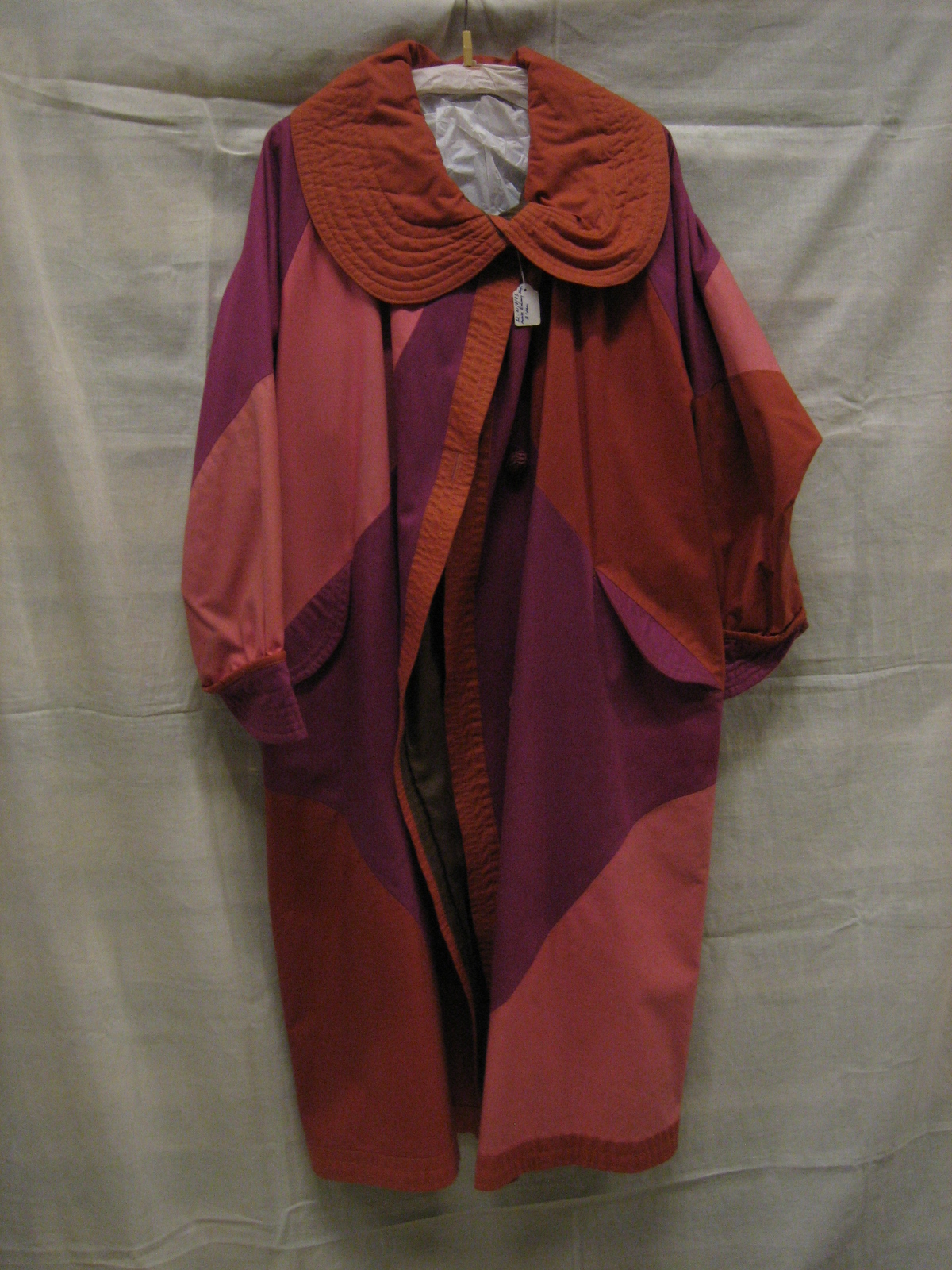 Regenmantel van roodbruine, oudroze en lichtpaarse k...