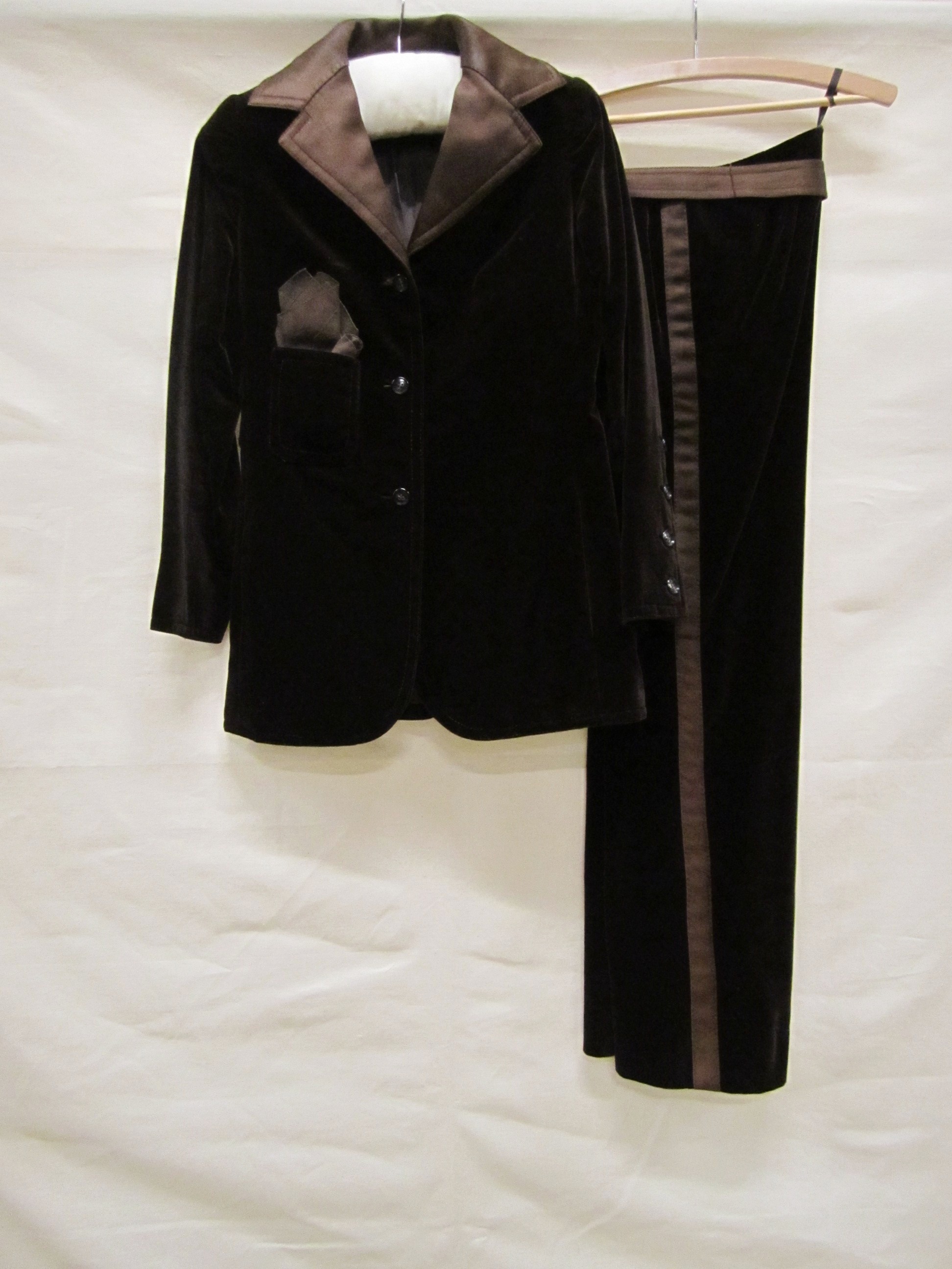 Broekpak van donkerbruin fluweel, bestaande uit jasj...