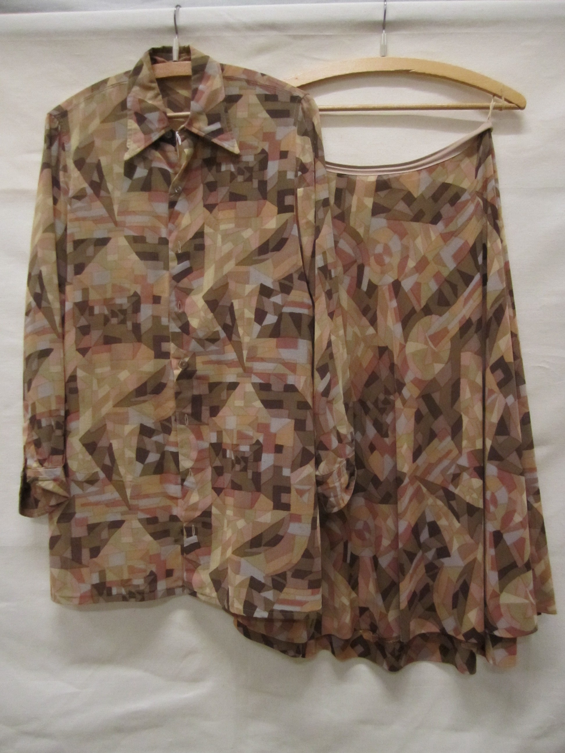 Ensemble bestaande uit een blouse en klokrok van bed...