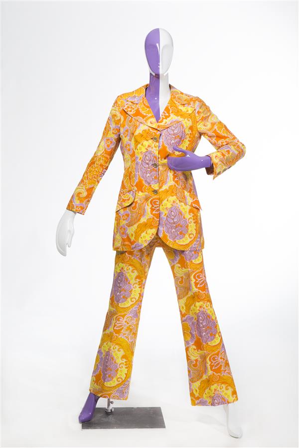Broekpak van synthetische oranje crèpezijde, bestaan...