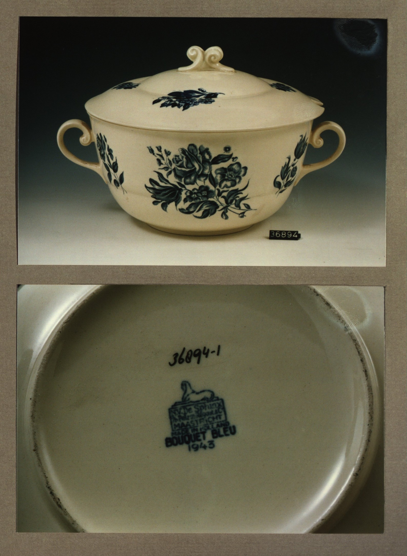 Soepterrine, model Boudewijn met decor Bouquet bleu