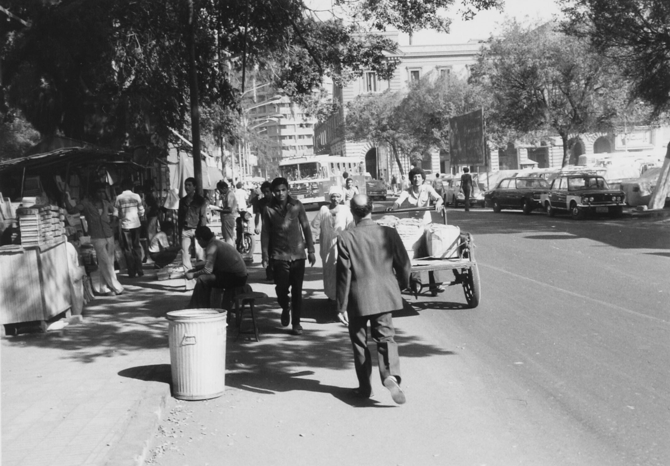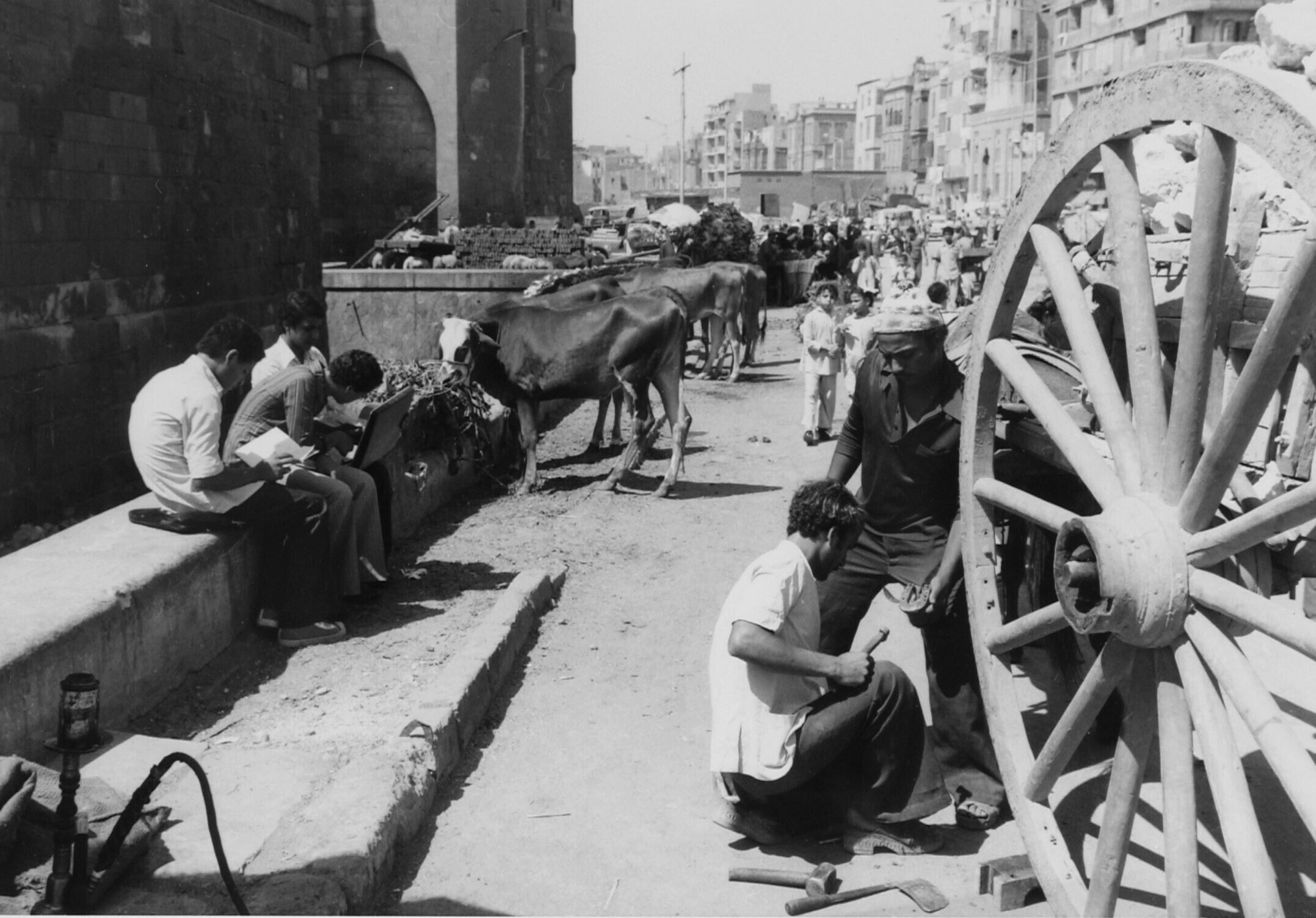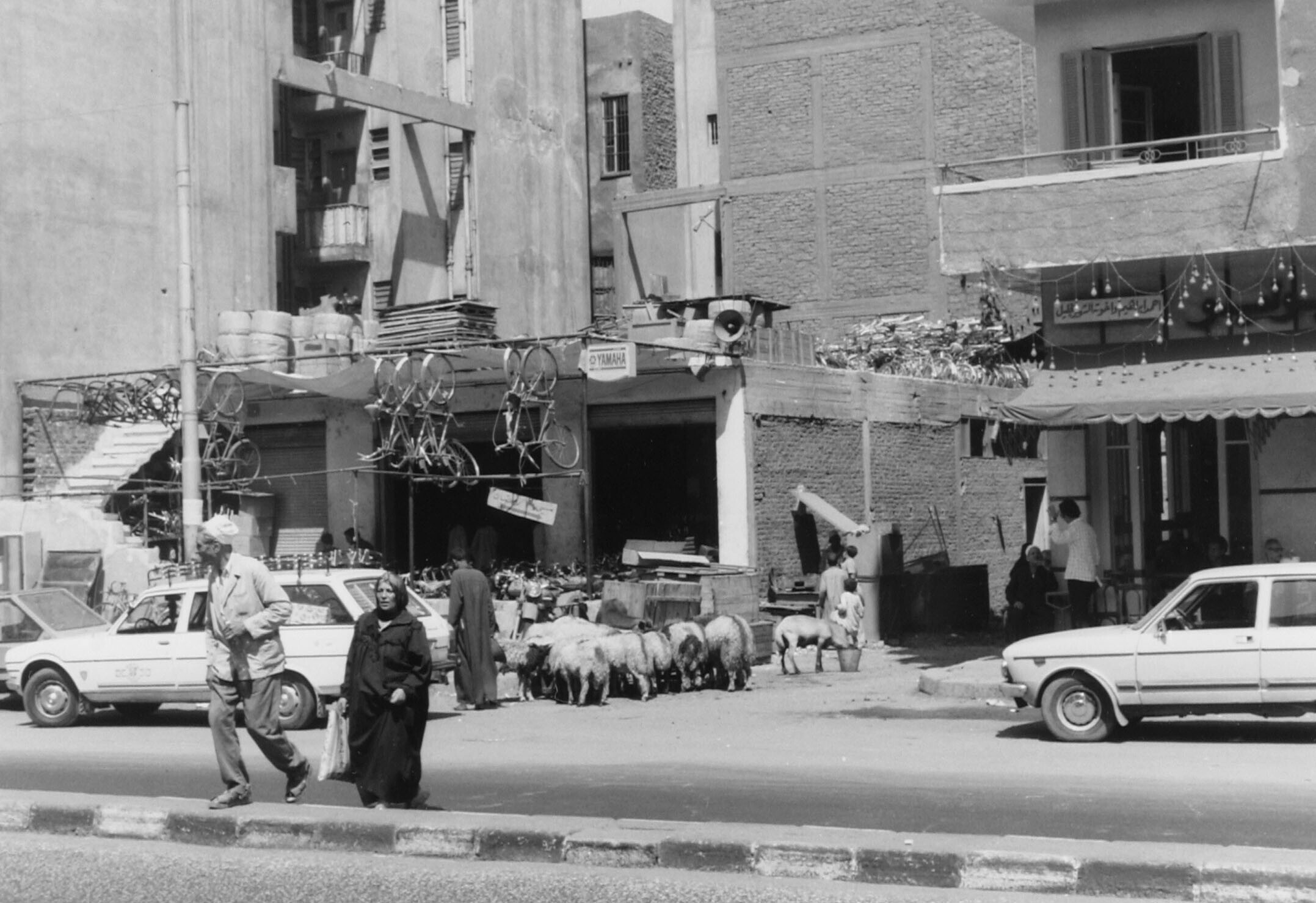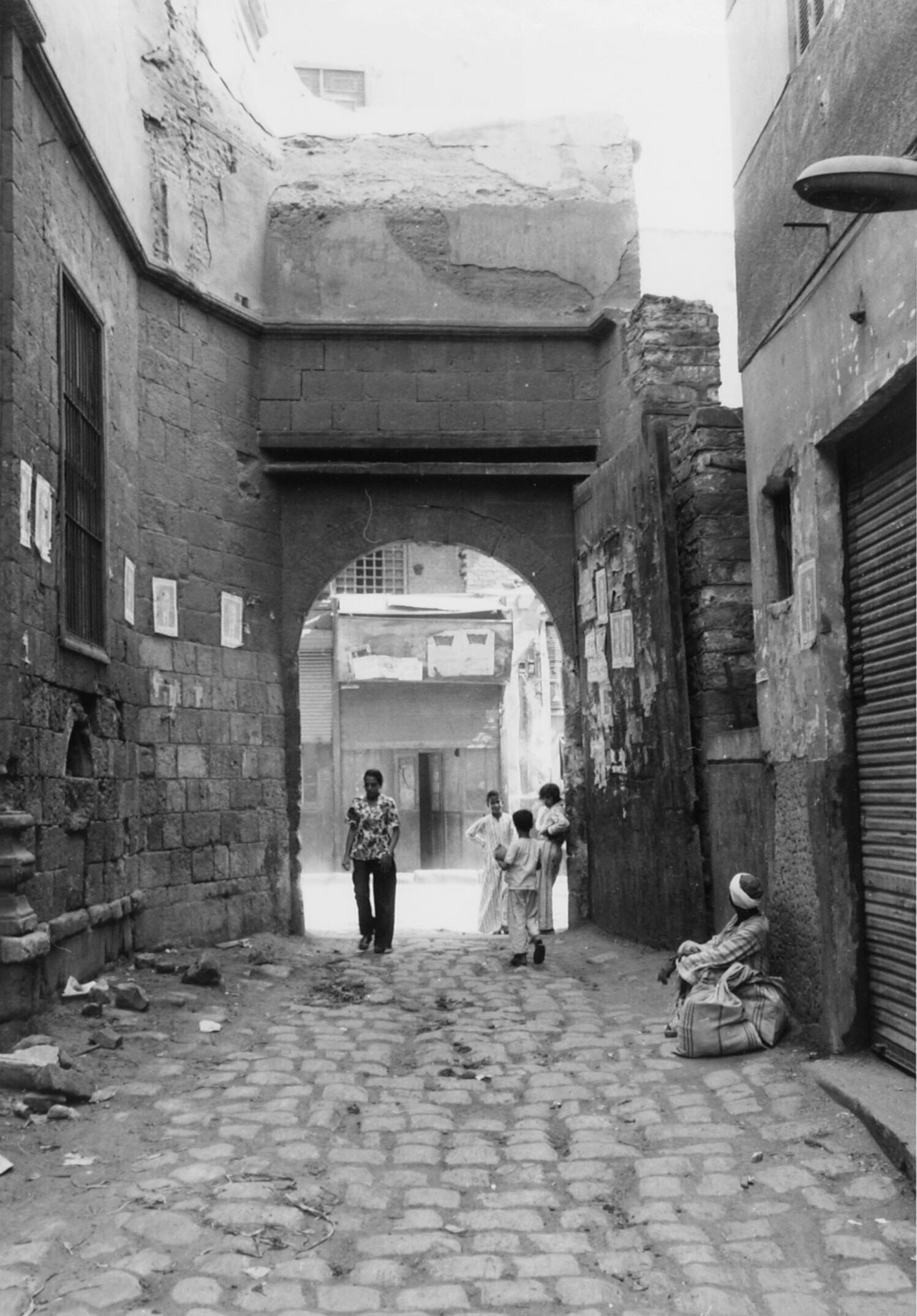 Straatbeeld in het oude Caïro. Rechts op de voorgron...