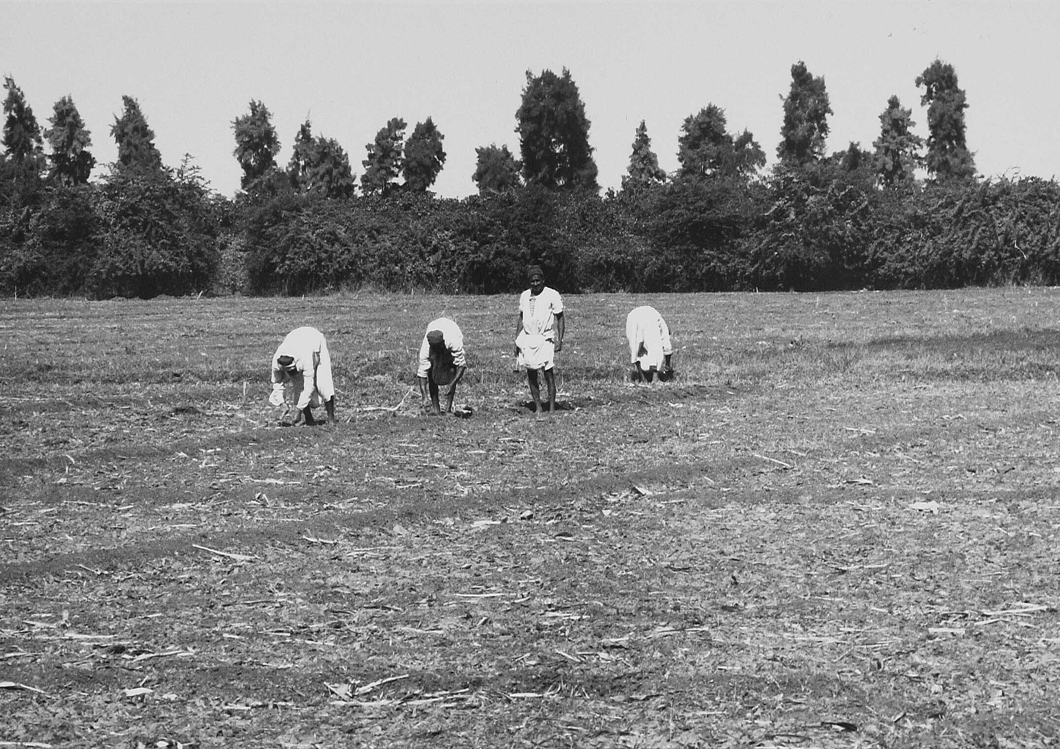 "ful"-zaad wordt gezaaid op de akker bij Minya